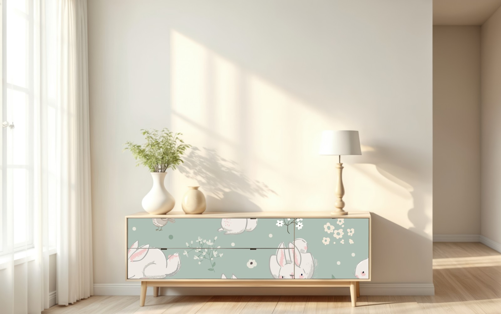 Repositionierbarer Aufkleber pastell häschen muster fürs kinderzimmer