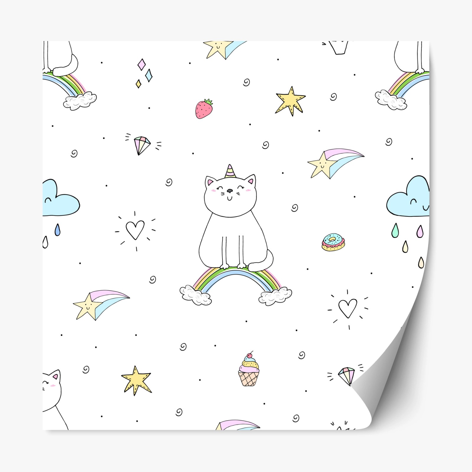 Repositionierbarer Aufkleber Pastell-einhornkatze auf dem regenbogen