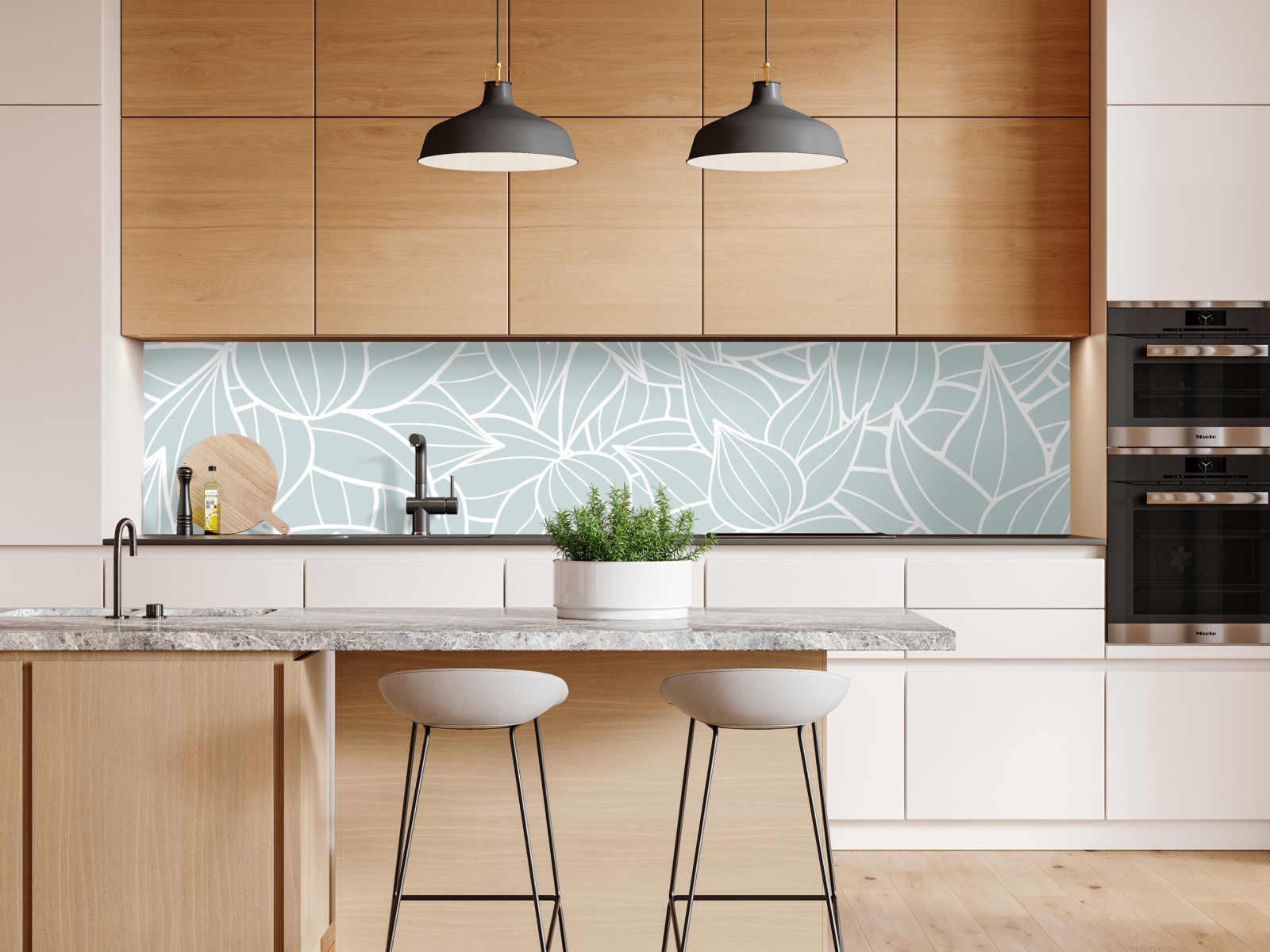 Zartes botanisches blättermuster in sanftem türkis schafft eine beruhigende natürliche Eleganz für jeden Raum.