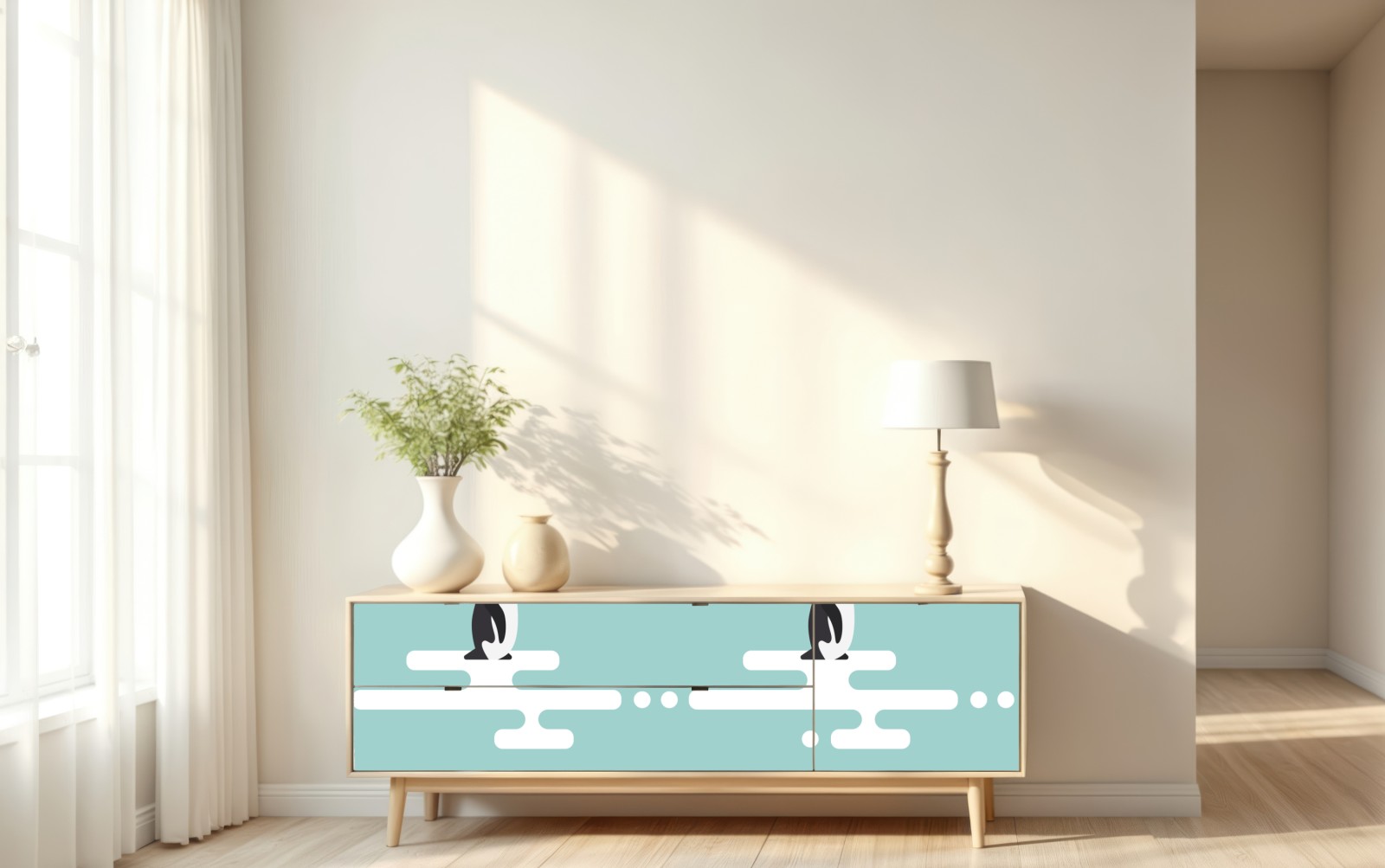 Verspielte nahtlose pinguinillustration in sanften türkisfarbenen Tönen verleiht kinderzimmern eine gemütliche, märchenhafte Atmosphäre.