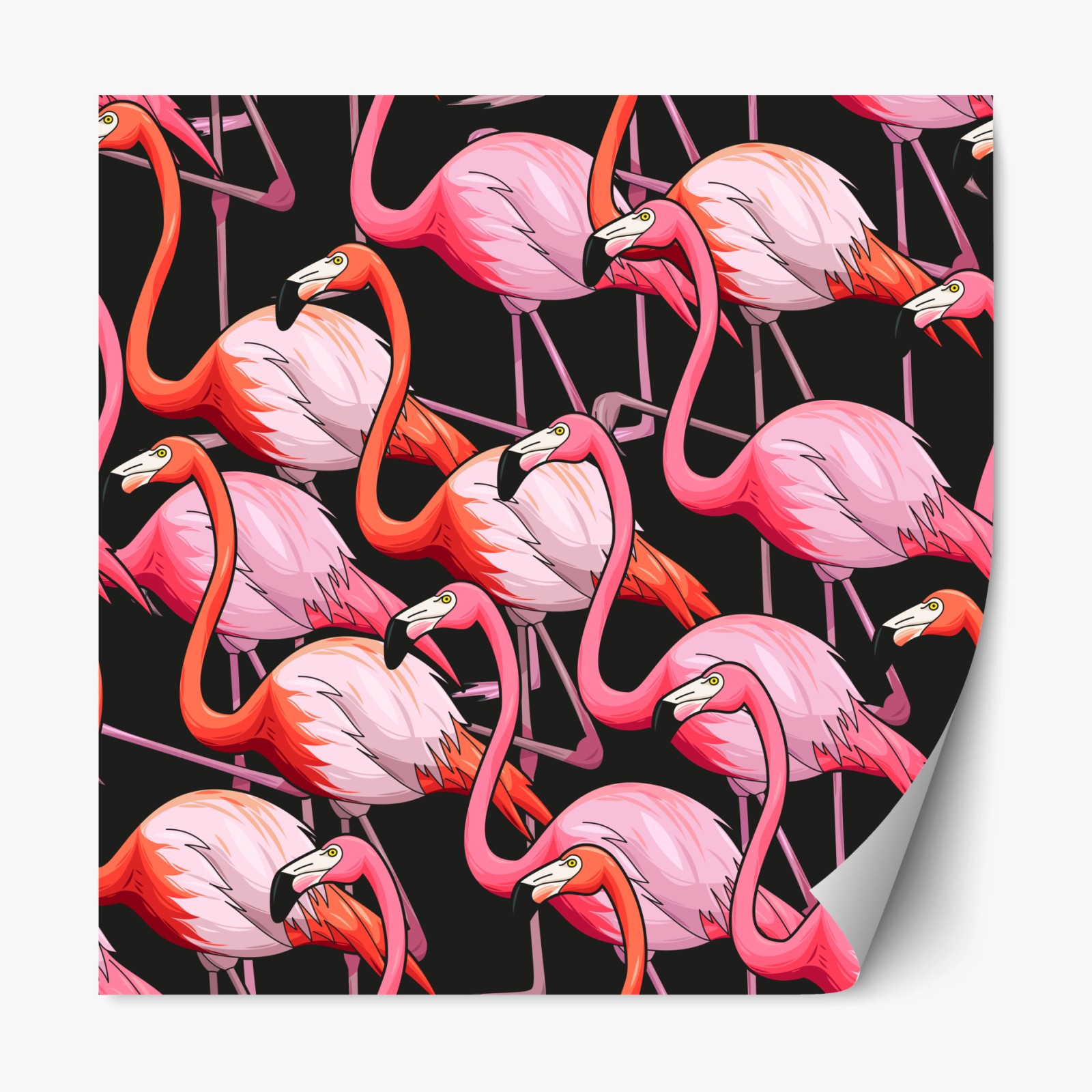 Repositionierbarer Aufkleber Rosa flamingo-muster auf schwarzem hintergrund