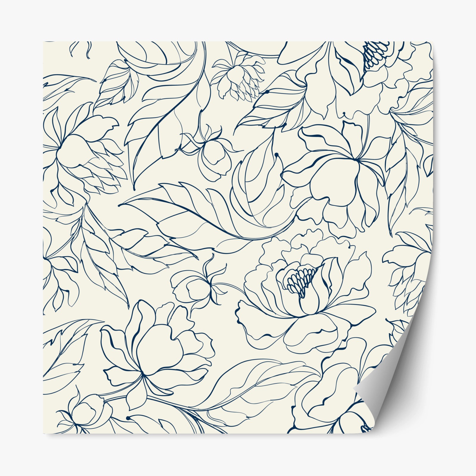 Repositionierbarer Aufkleber Handgezeichnetes marineblaues blumenmuster auf creme