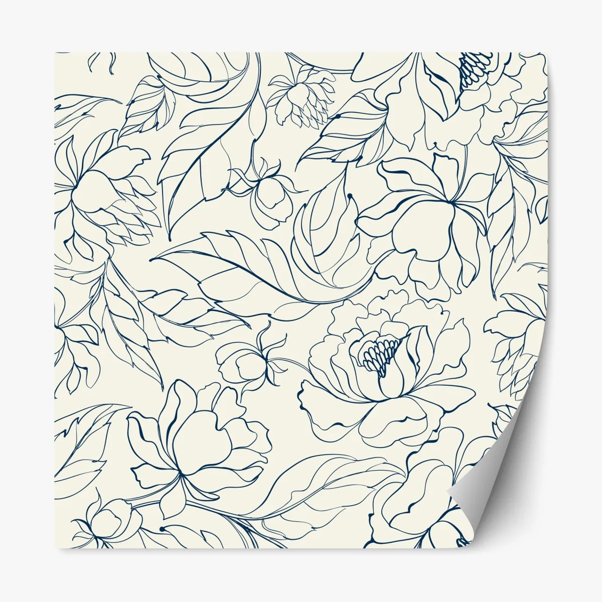 Repositionierbarer Aufkleber handgezeichnetes marineblaues blumenmuster auf creme