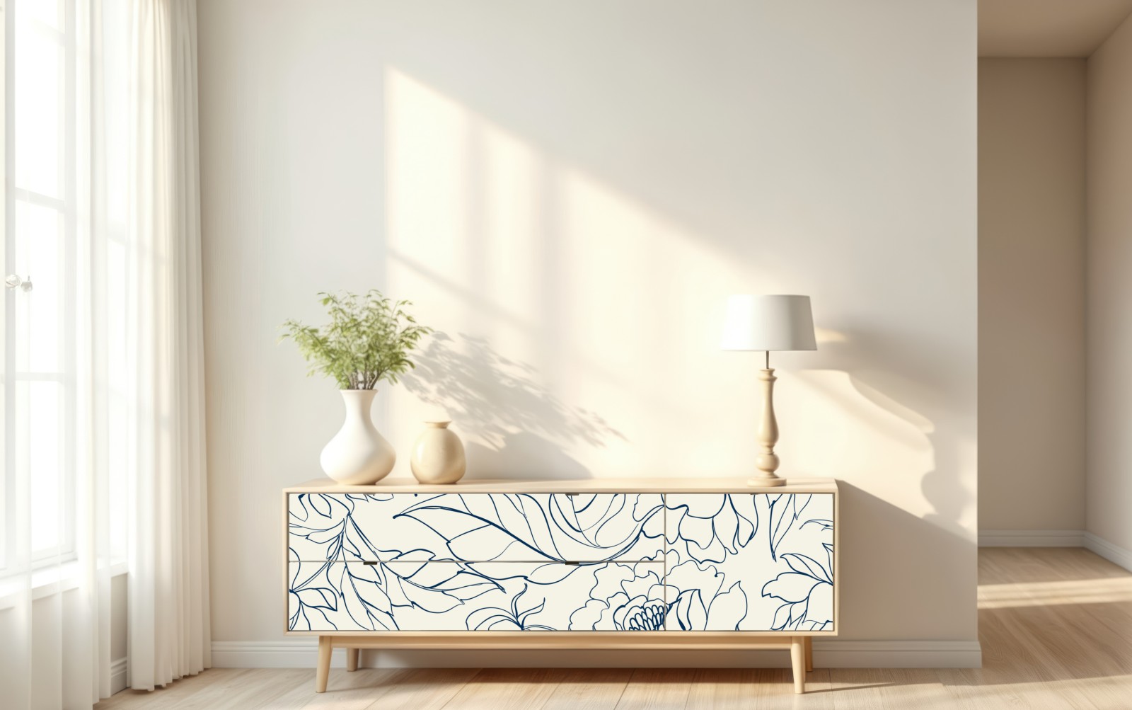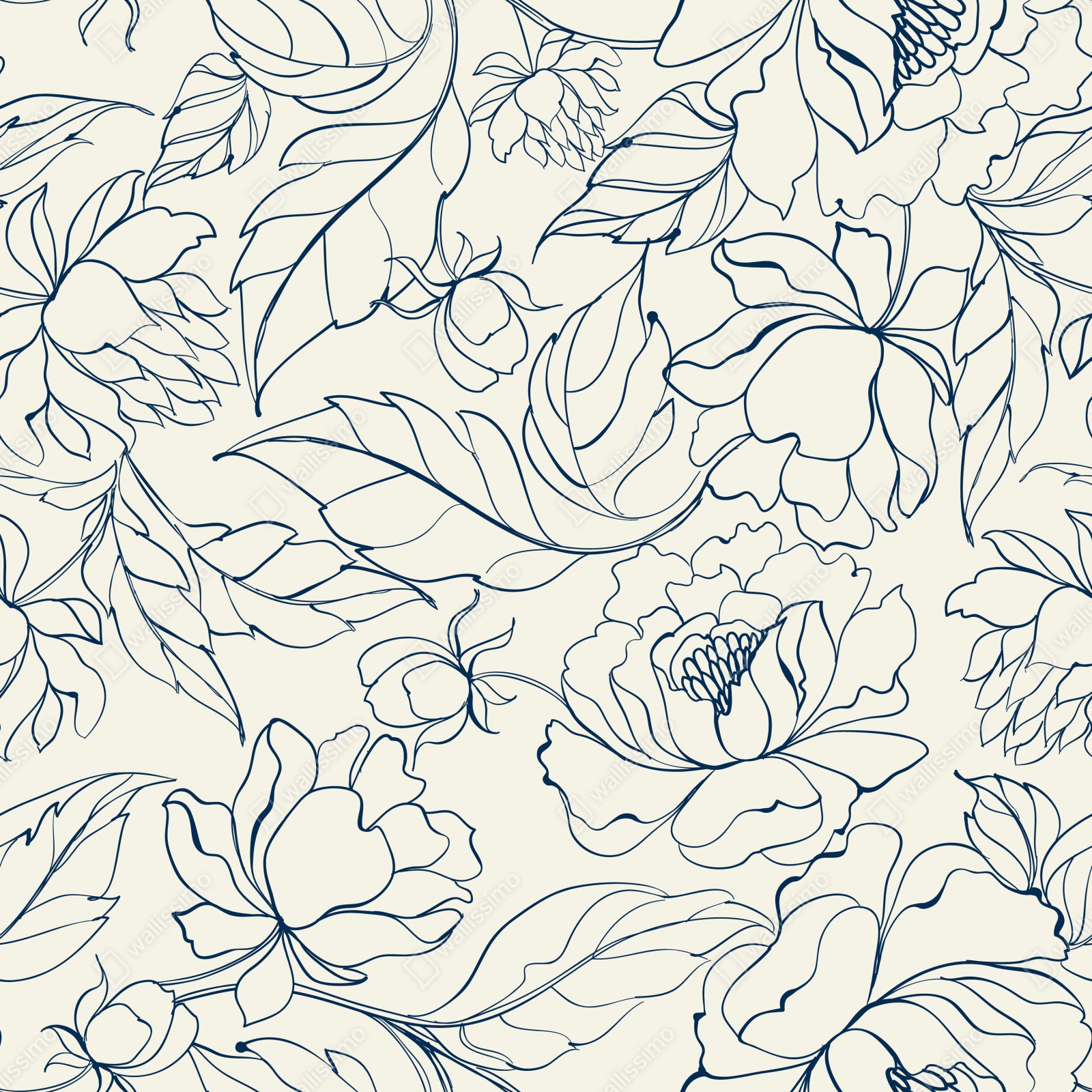 elegantes handgezeichnetes marineblaues blumenmuster auf cremefarbenem hintergrund verleiht minimalistischen botanischen charme jedem raum.