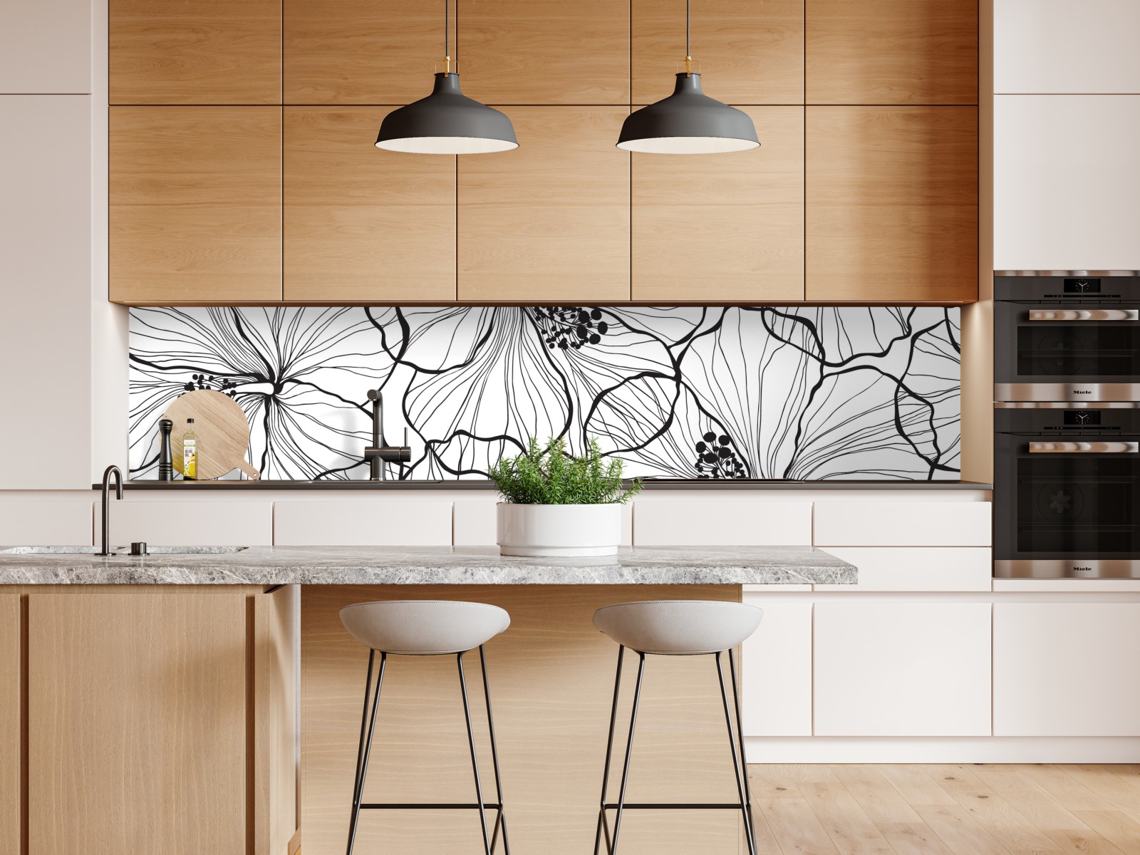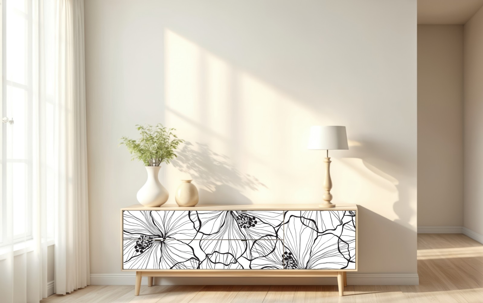 Elegante schwarz-weiße Hibiskuszeichnung setzt einen ruhigen, minimalistischen Akzent in jedem Raum und passt perfekt zu modernen und skandinavischen Interieurs.