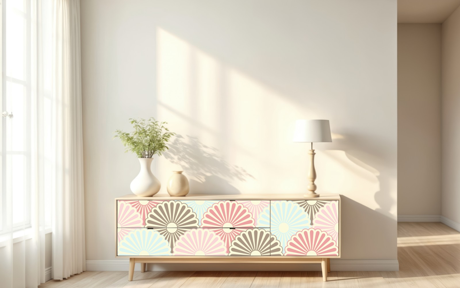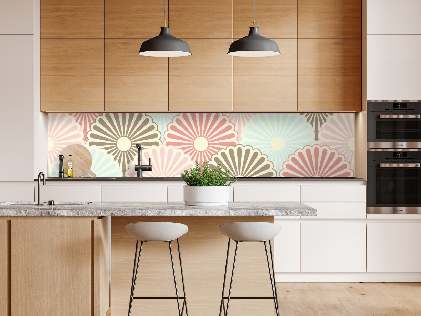 Zartes pastelliges Muschelmuster in Retro-Farben verleiht Räumen eine gemütliche und dekorative Atmosphäre.