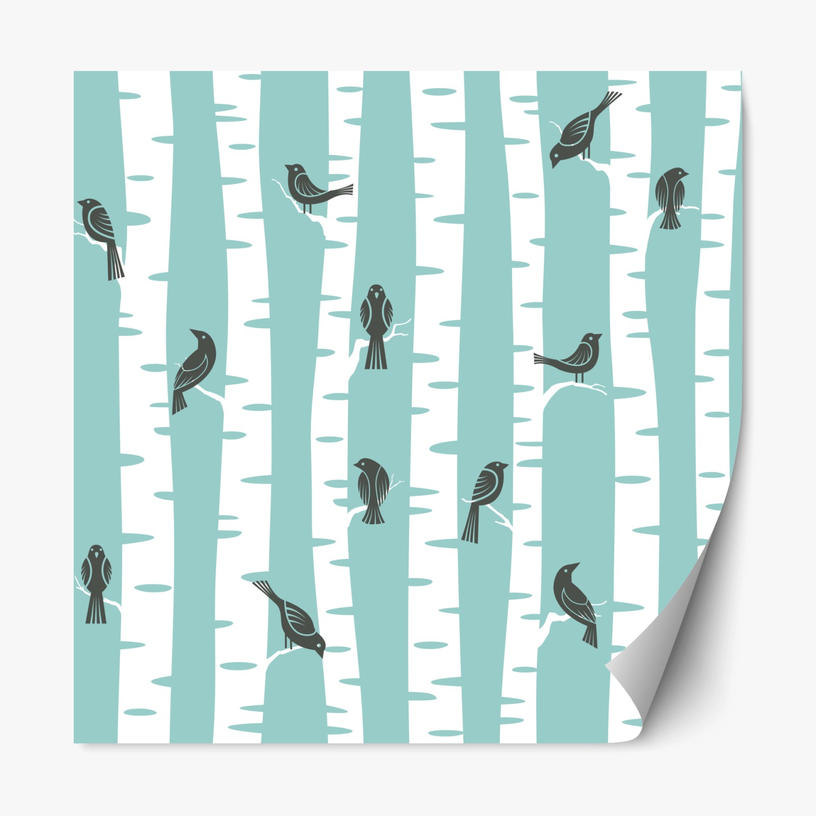 Repositionierbarer Aufkleber Türkis birkenwald mit vögeln