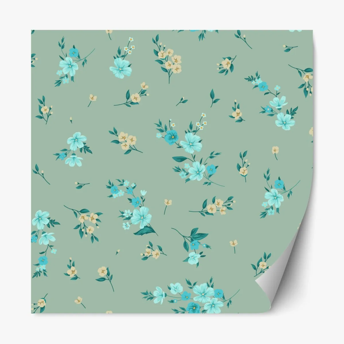 Repositionierbarer Aufkleber pastell türkis blumenmuster auf salbeigrünem hintergrund