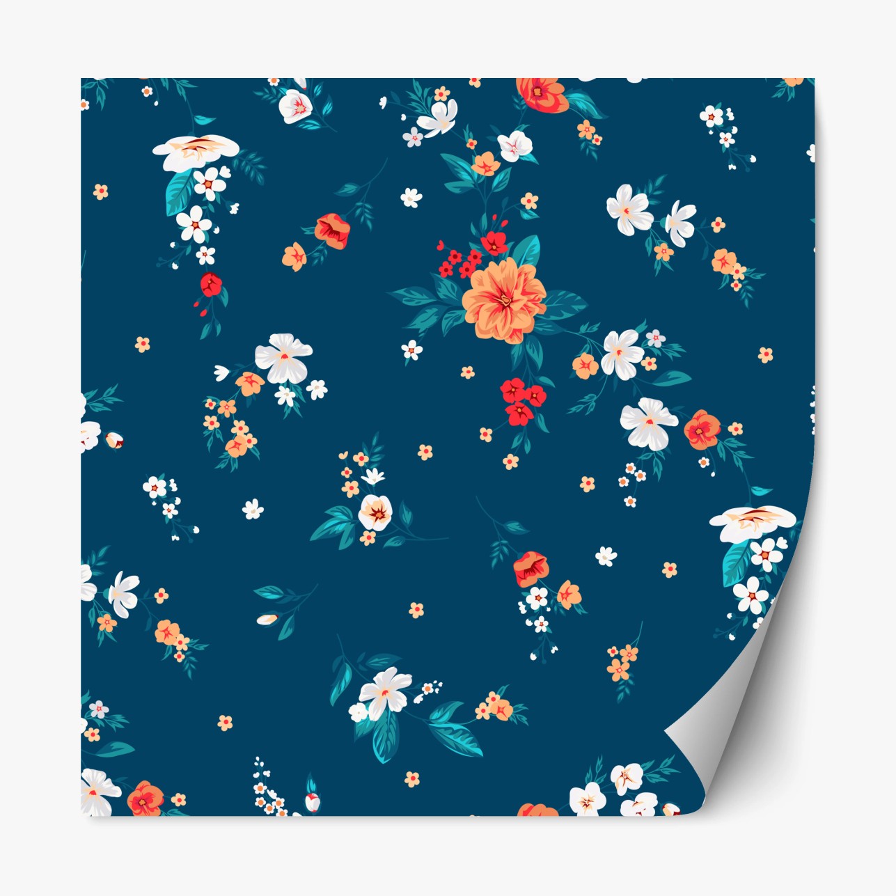 Repositionierbarer Aufkleber Zartes verstreutes blumenmuster auf tiefem türkis