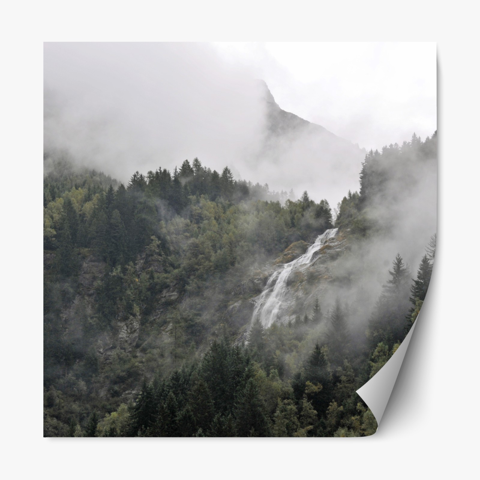 Repositionierbarer Aufkleber nebliger wasserfall im bergwald