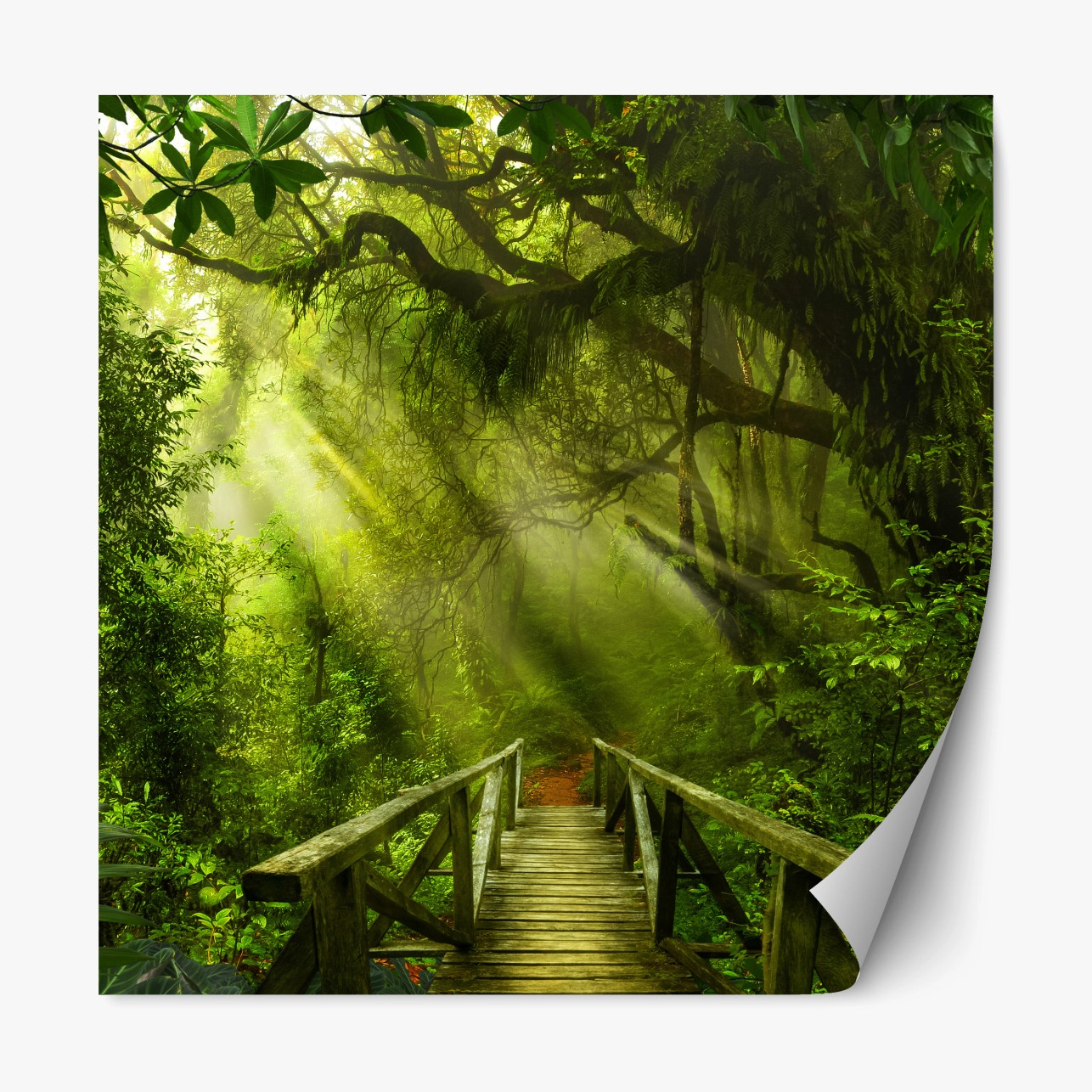 Repositionierbarer Aufkleber Sonnenbeschienener waldweg