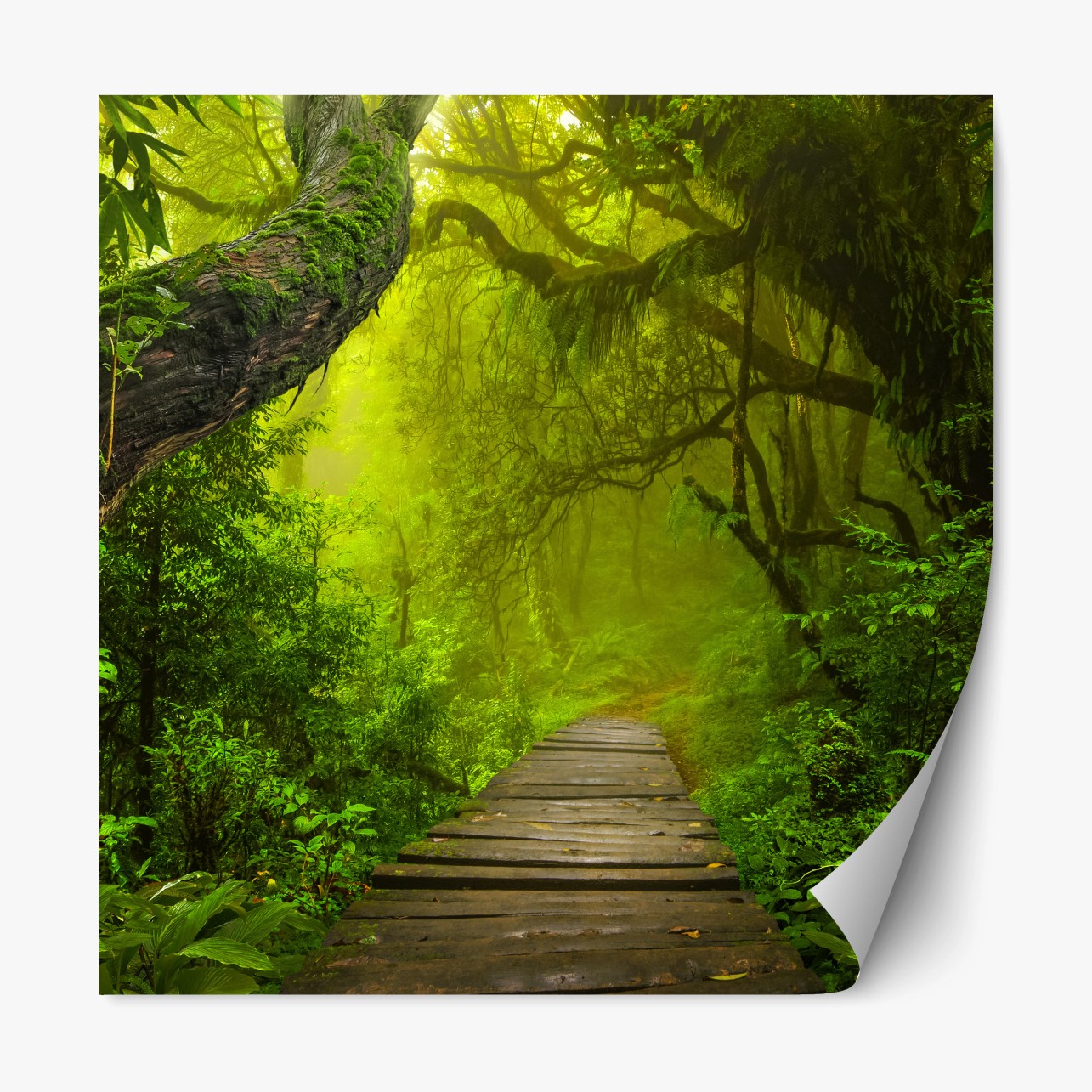 Repositionierbarer Aufkleber Mystischer grüner waldpfad