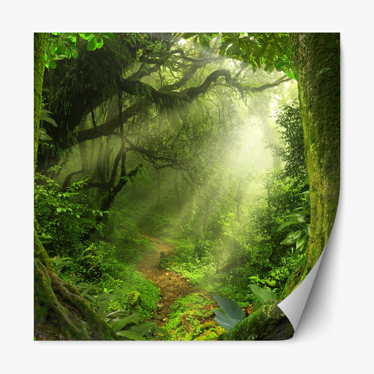 Repositionierbarer Aufkleber Sonnenbeschienener moosiger waldpfad