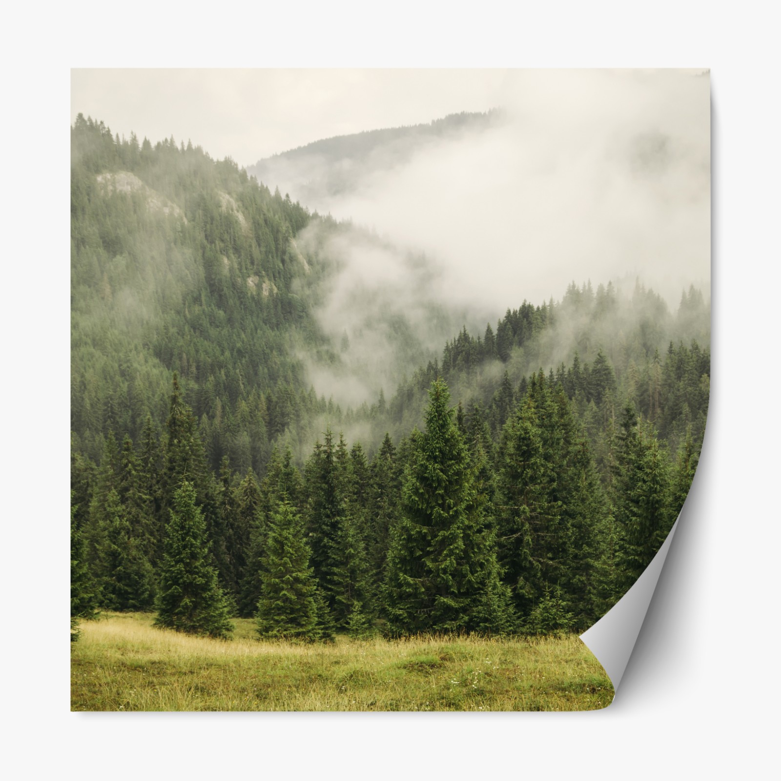Repositionierbarer Aufkleber nebeliger nadelwald