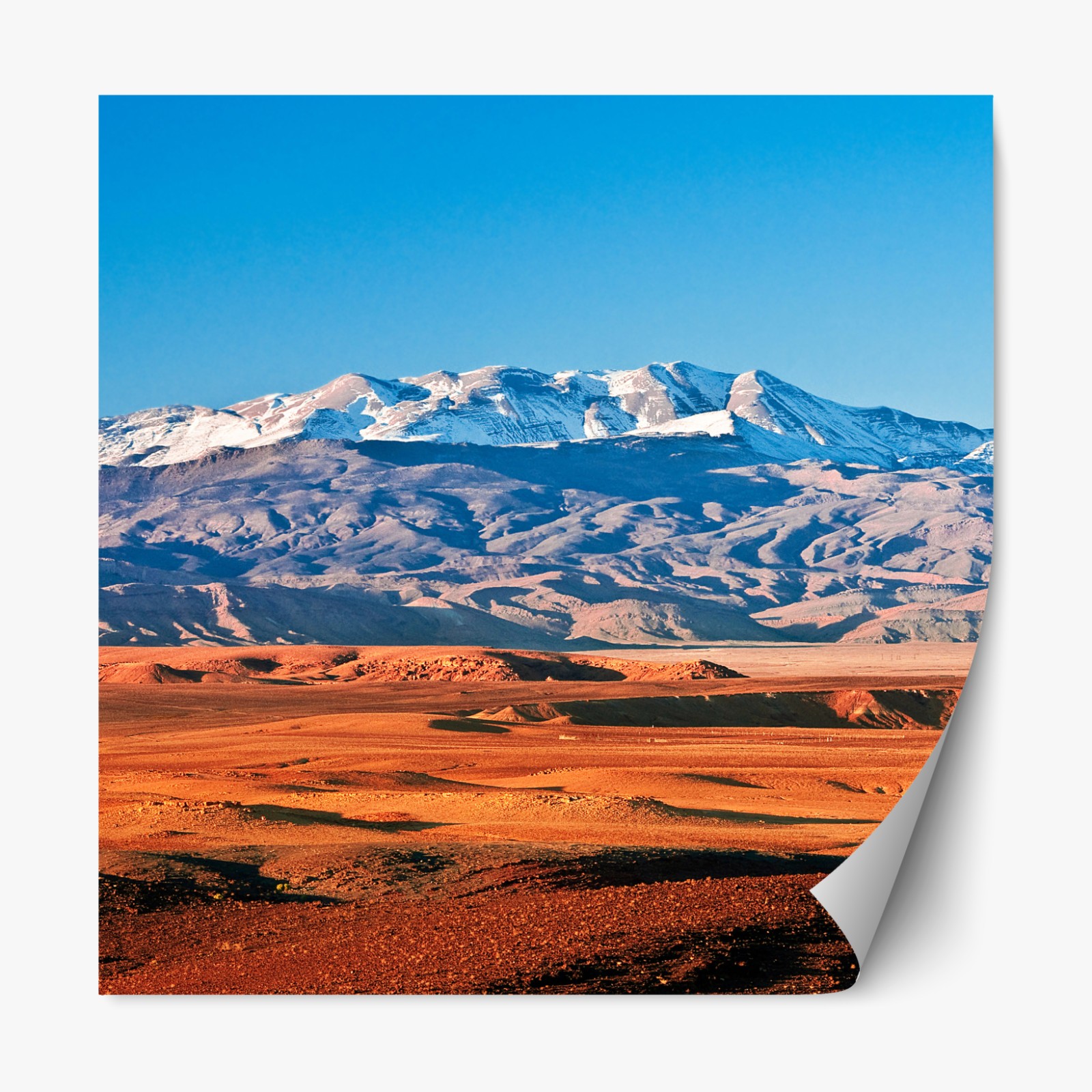 Repositionierbarer Aufkleber sonnenbeschienene wüste mit schneebedeckten bergen
