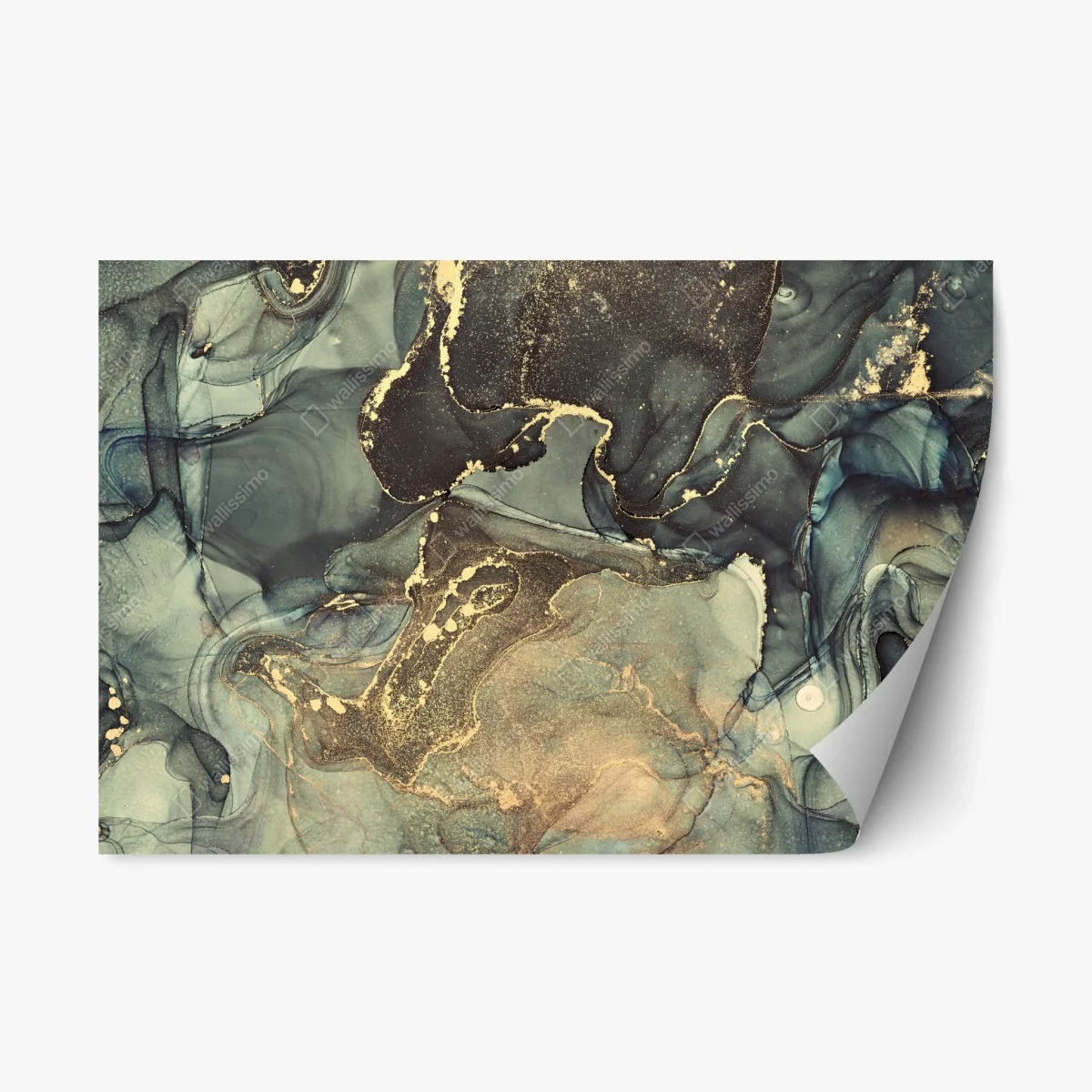 Repositionierbarer Aufkleber Türkis und gold fließende abstraktion