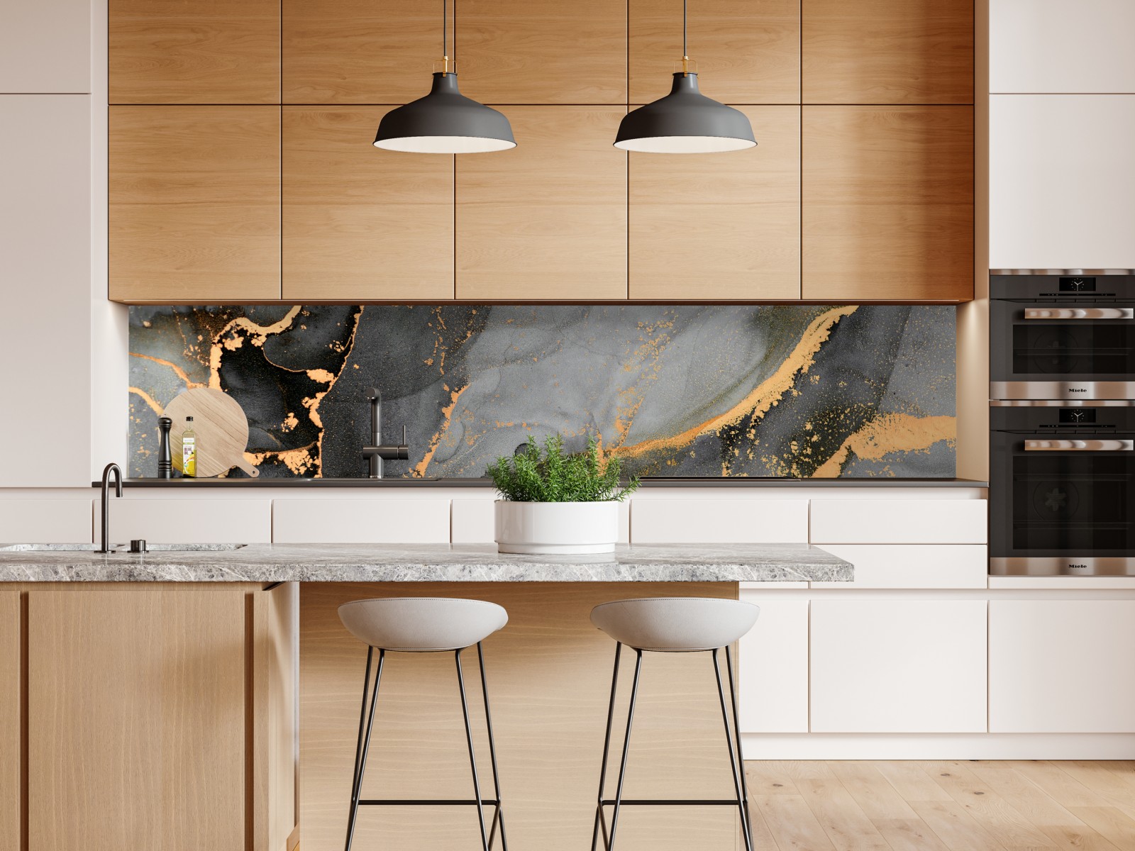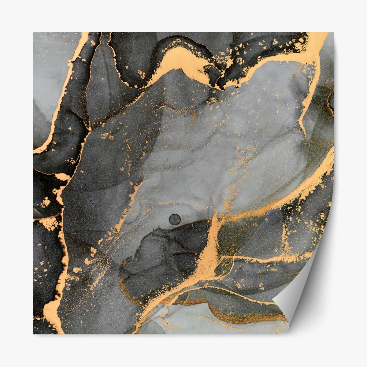 Elegantes abstraktes Fluid-Kunstwerk mit grauen Tönen und schimmernden goldenen Adern für ein anspruchsvolles modernes Interieur.