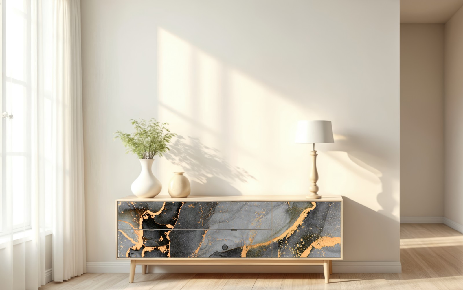 Repositionierbarer Aufkleber rauchiger grauer marmor mit goldenen adern