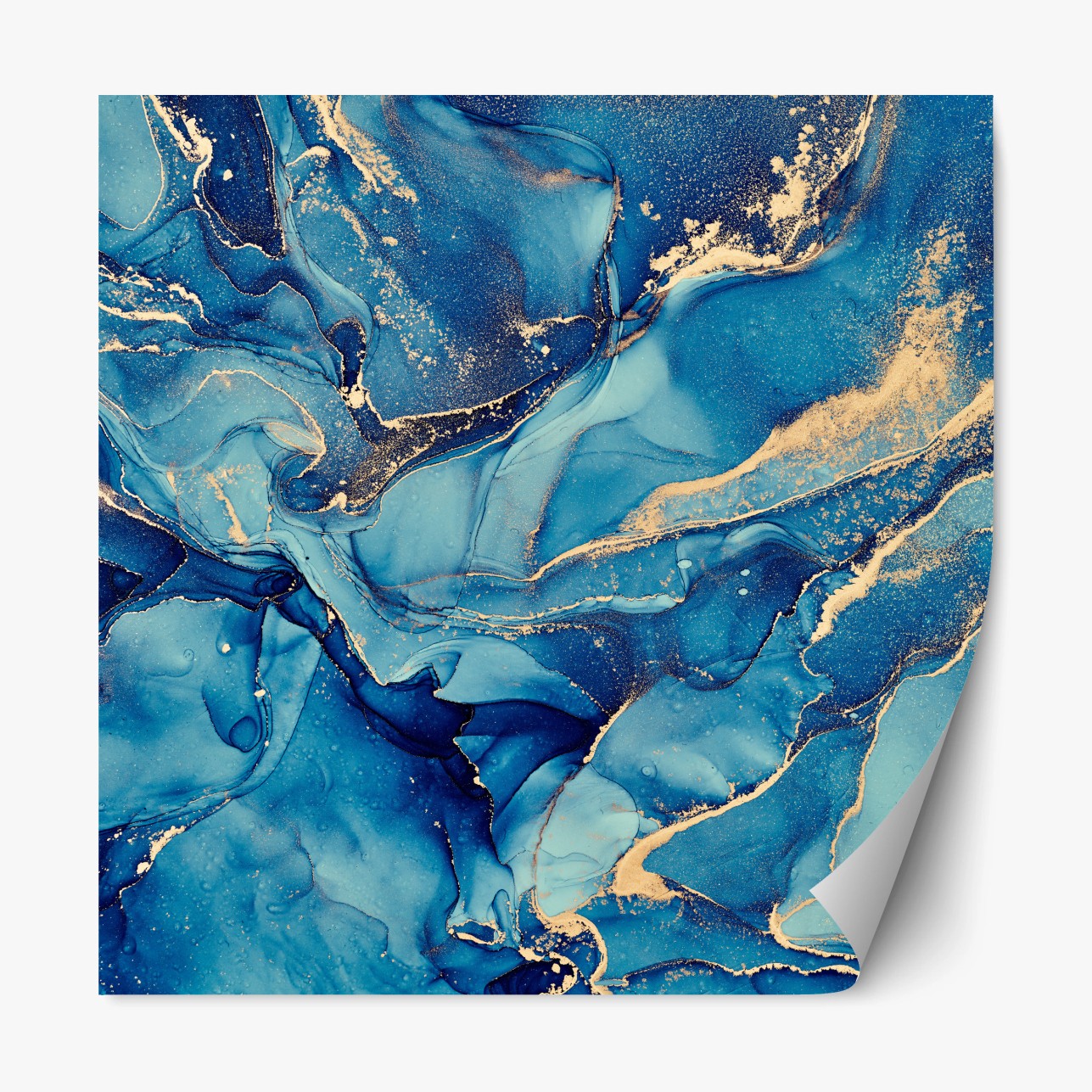 Repositionierbarer Aufkleber Ozeanblau und goldene wirbel flüssige abstraktion