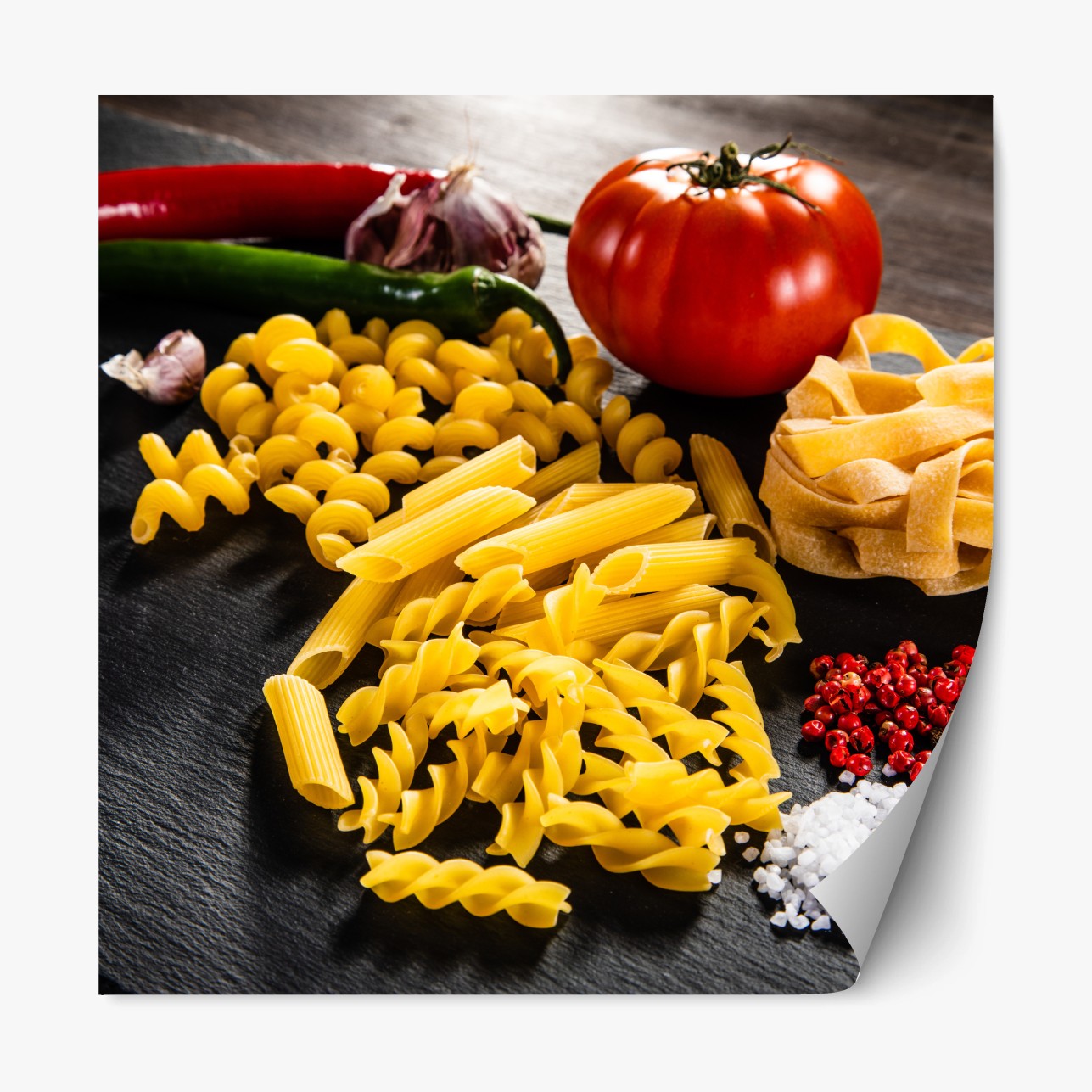 Repositionierbarer Aufkleber Verschiedene trockene nudeln und frische zutaten