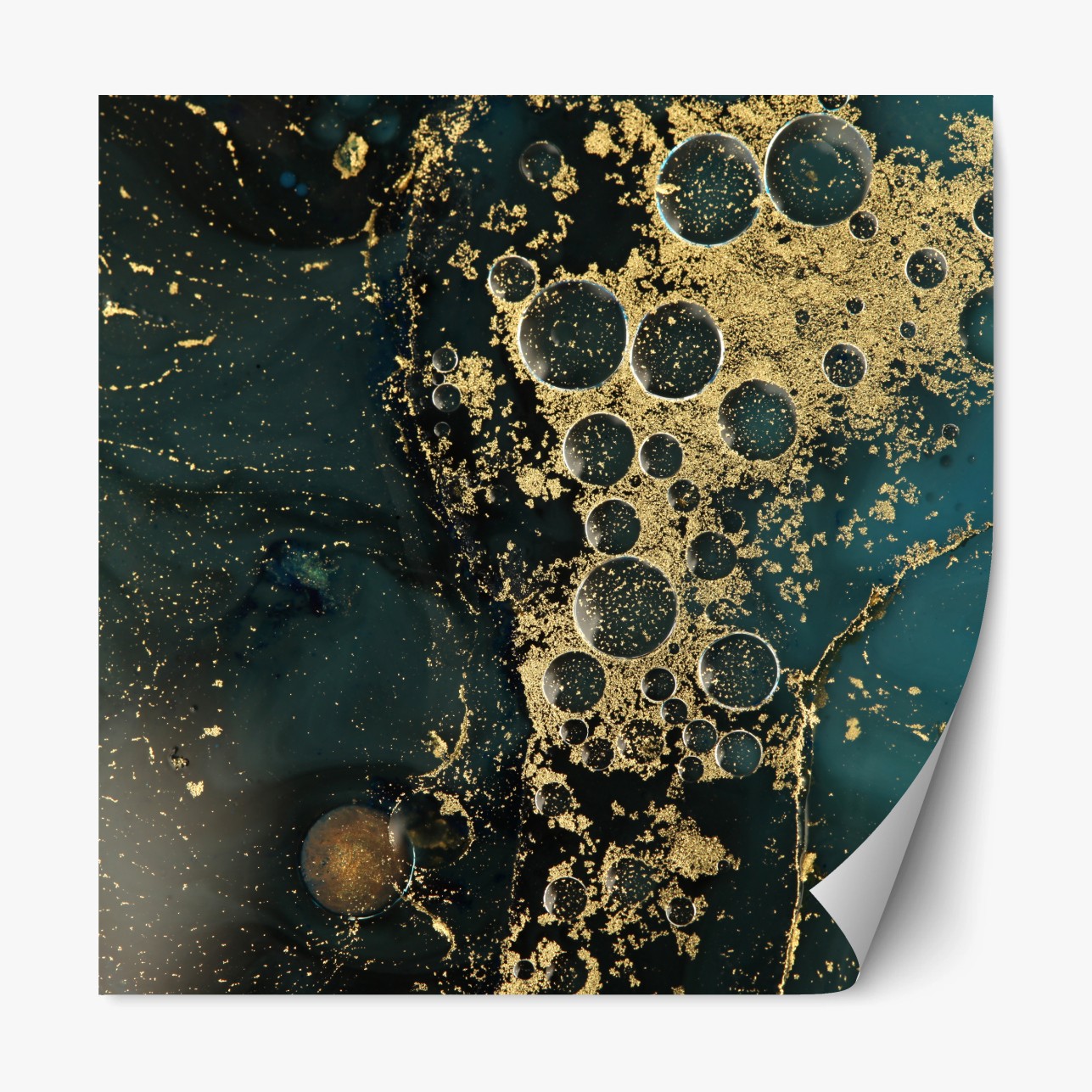 Repositionierbarer Aufkleber Türkis-gold abstrakte marmorierte textur