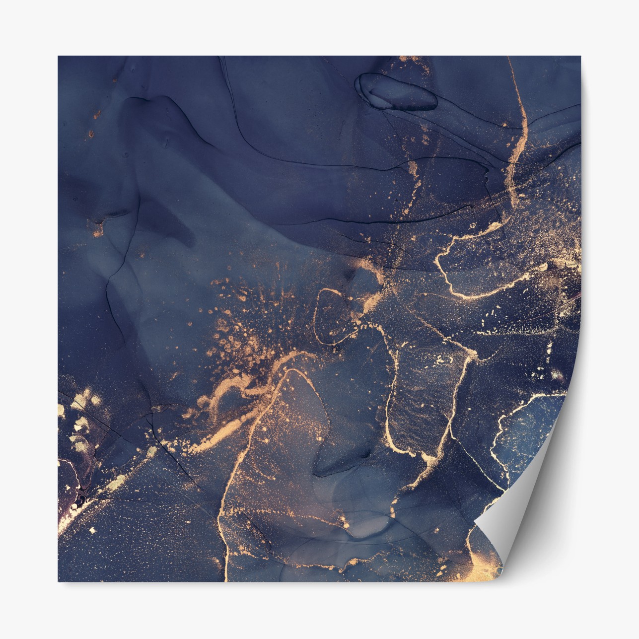 Repositionierbarer Aufkleber Dunkelblaue marmor-abstraktion mit goldenen adern