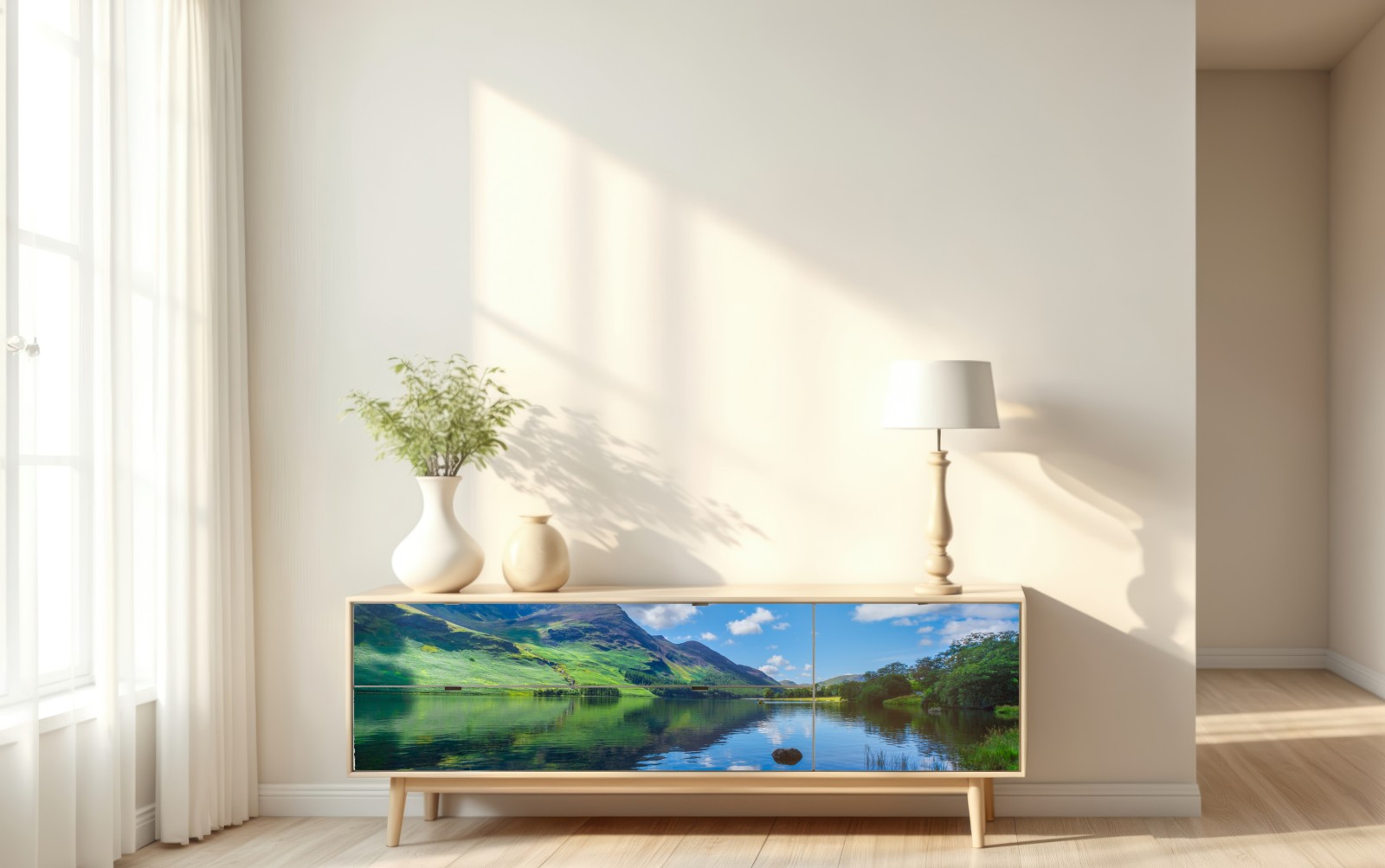 Atemberaubende Ansicht von Bergen, die sich in einem ruhigen See im Lake District spiegeln und Ihrem Raum natürliche Ruhe verleihen.