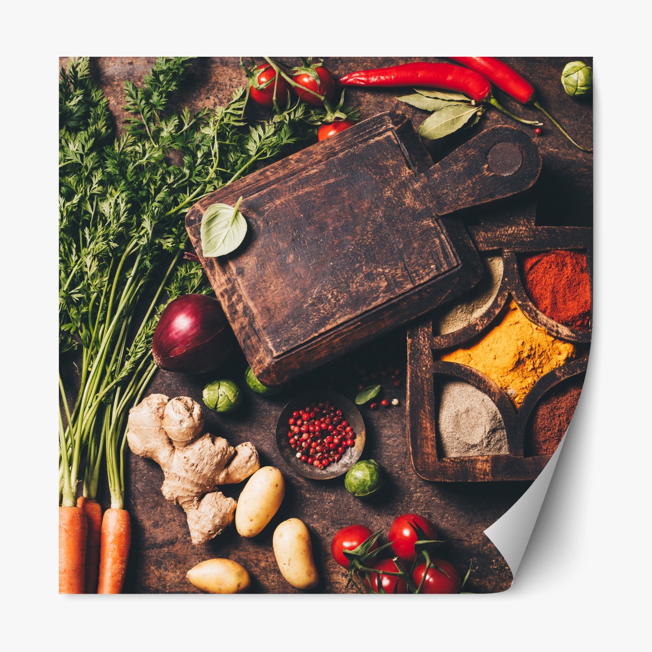 Repositionierbarer Aufkleber Rustikales stillleben mit gewürzen und gemüse