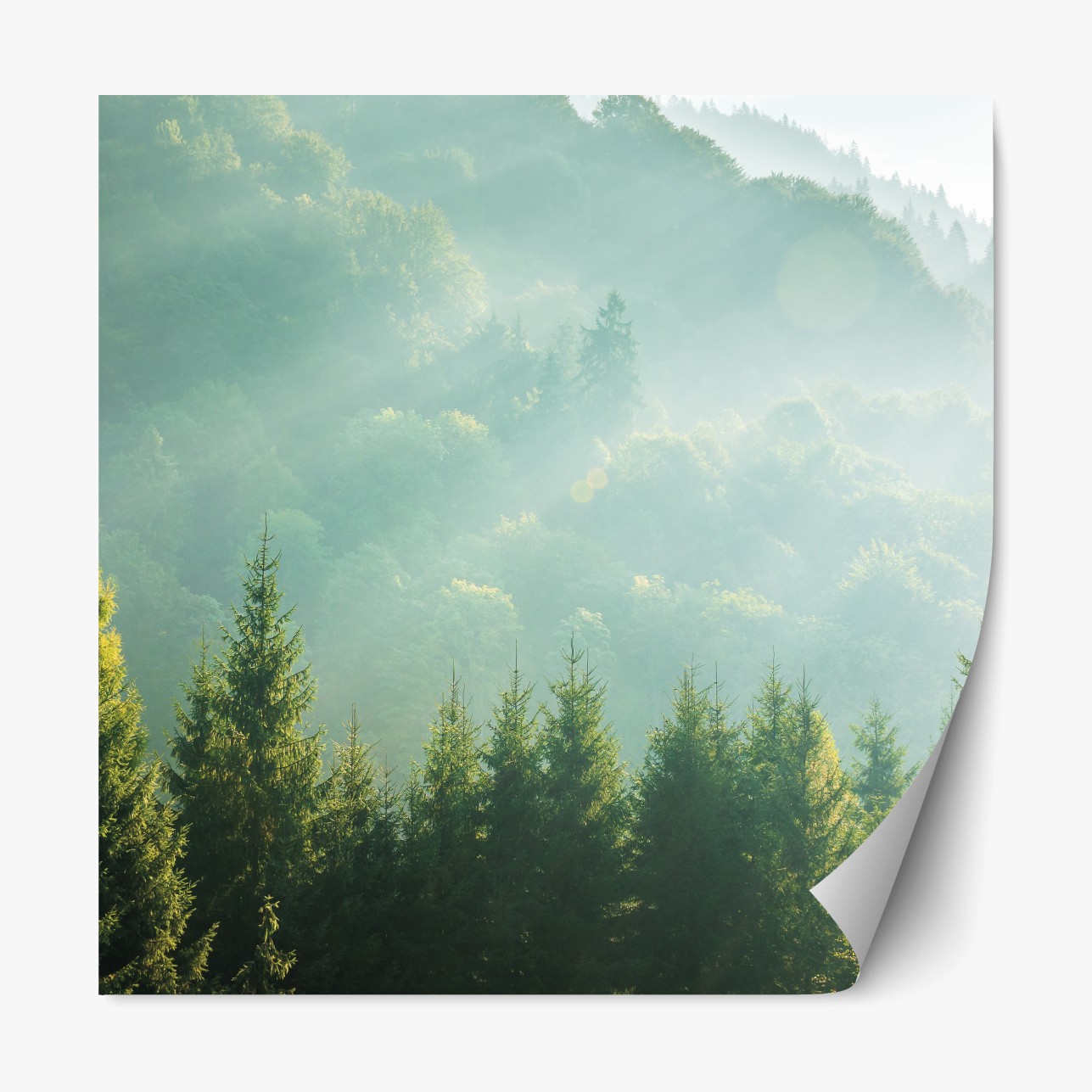 Repositionierbarer Aufkleber Neblige fichtenspitzen im morgenlicht