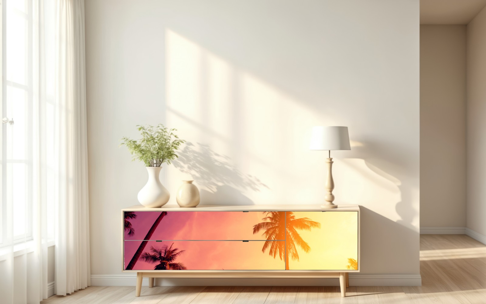 Repositionierbarer Aufkleber tropischer sonnenuntergang mit palmen