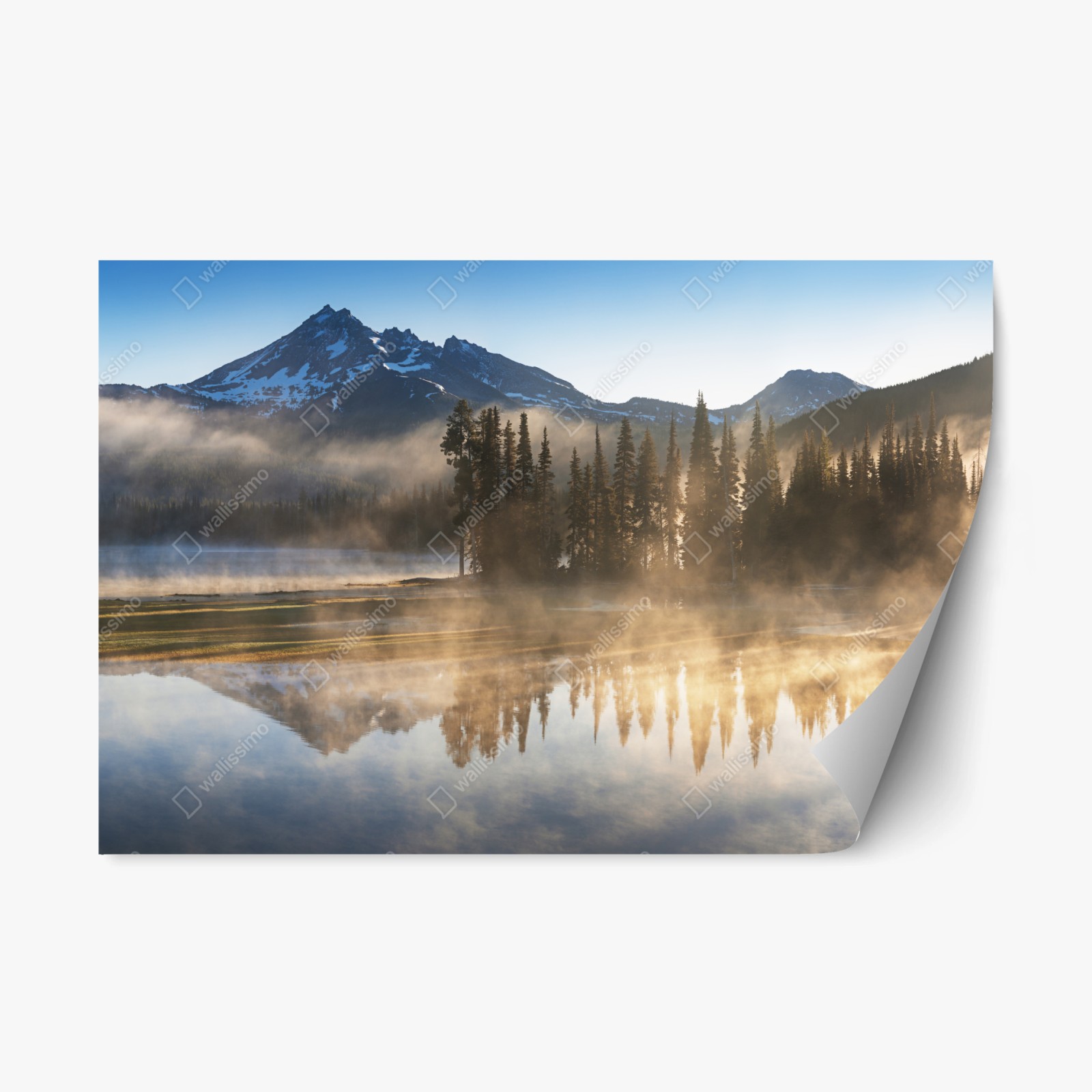 Repositionierbarer Aufkleber Nebliger bergsonnenaufgang mit spiegelung
