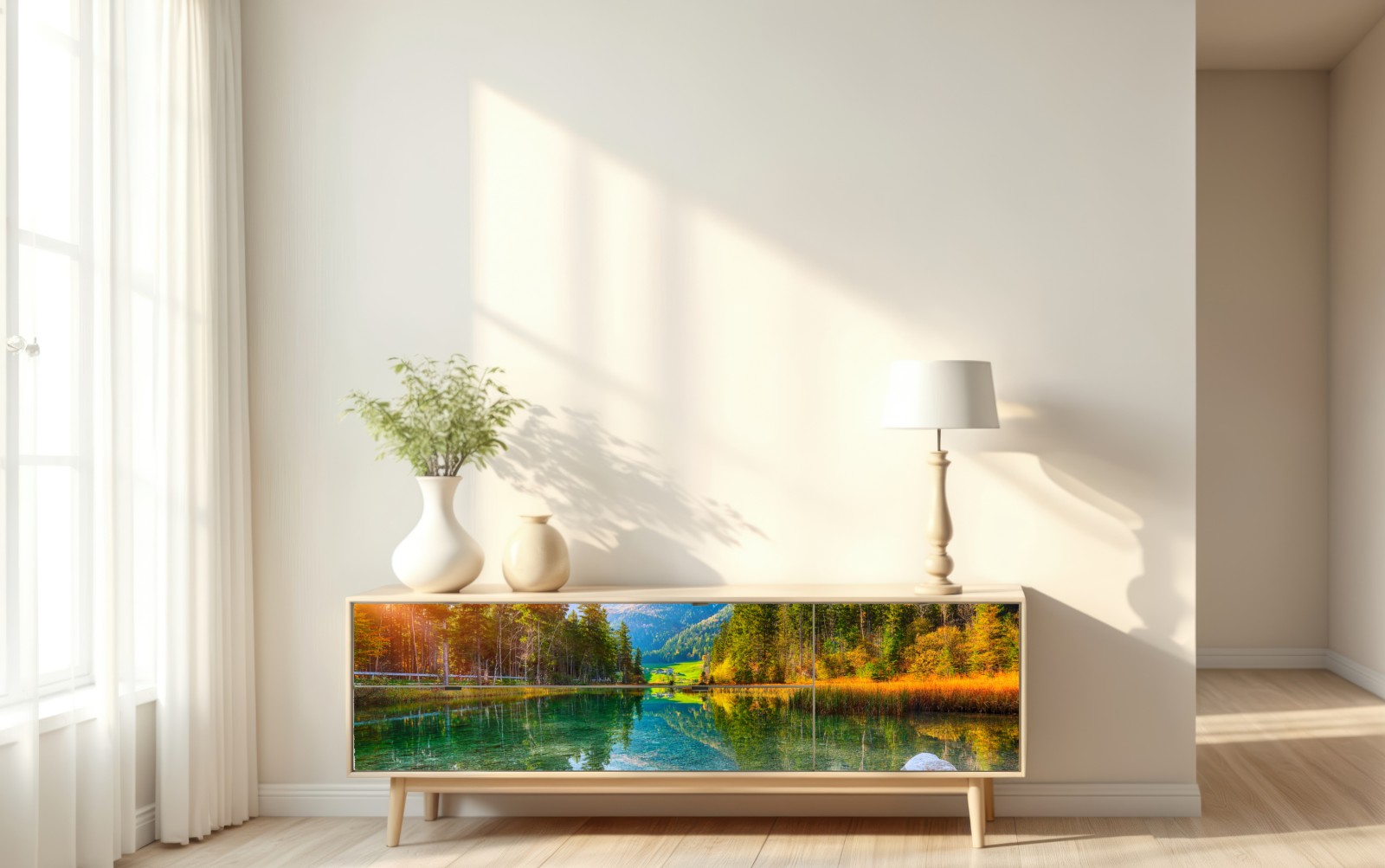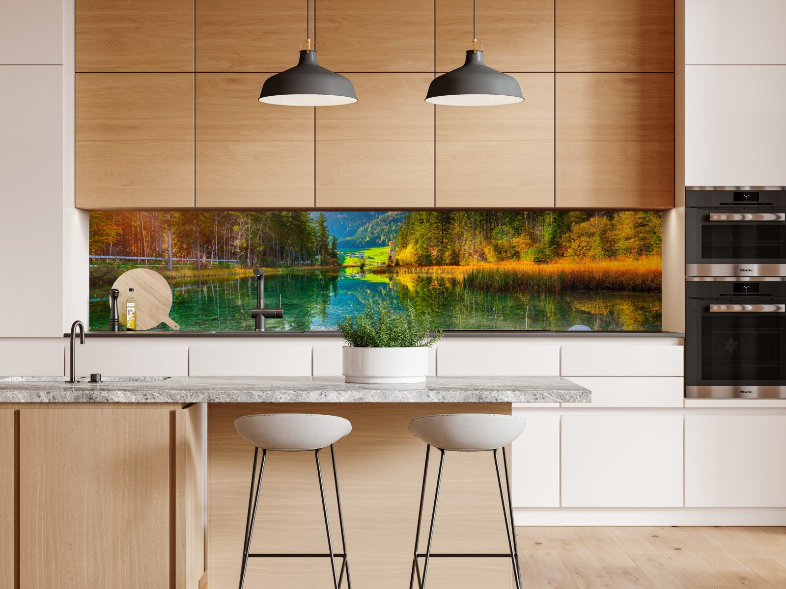 Repositionierbarer Aufkleber Hintersee herbstliche see- und bergspiegelung