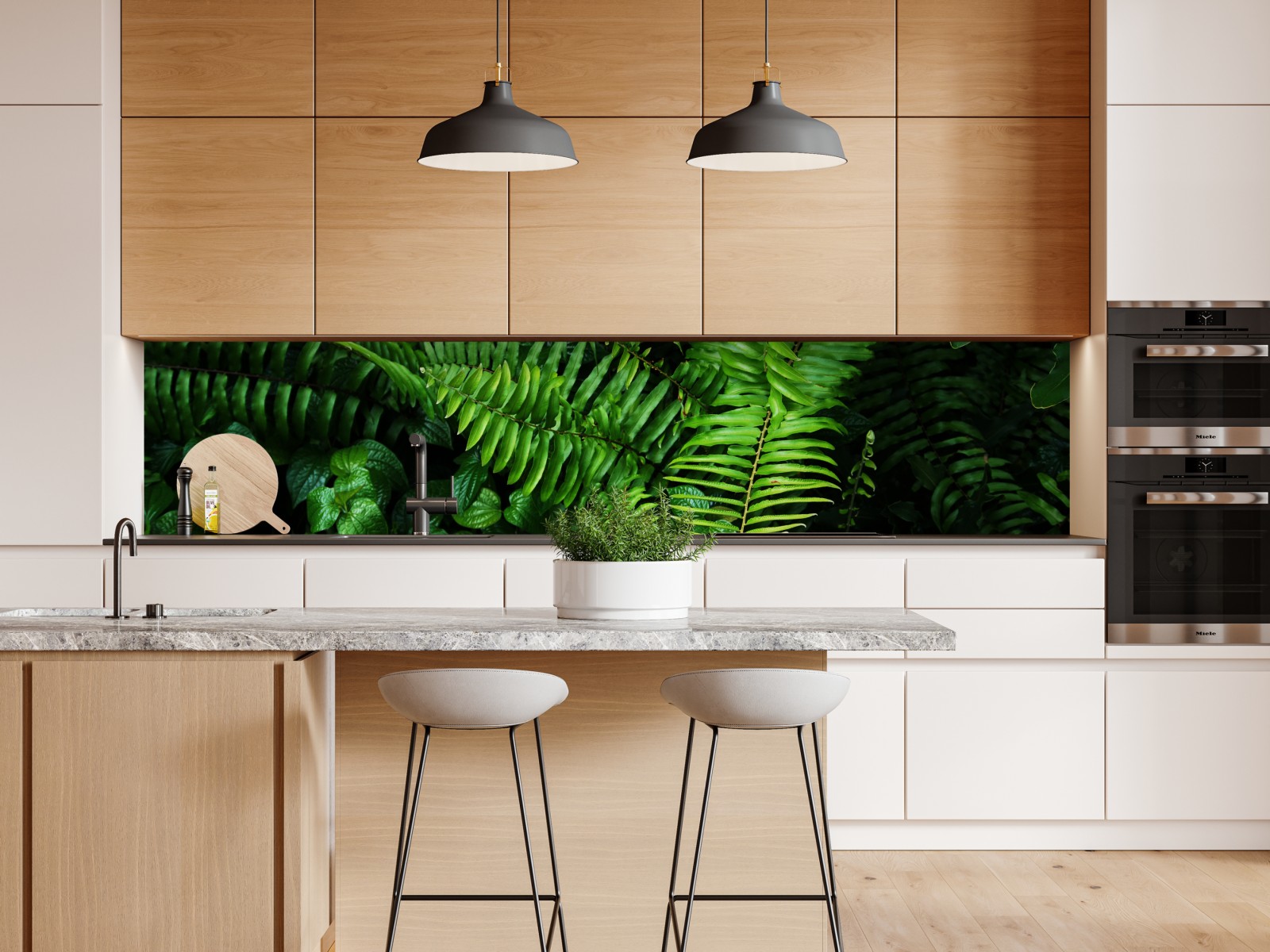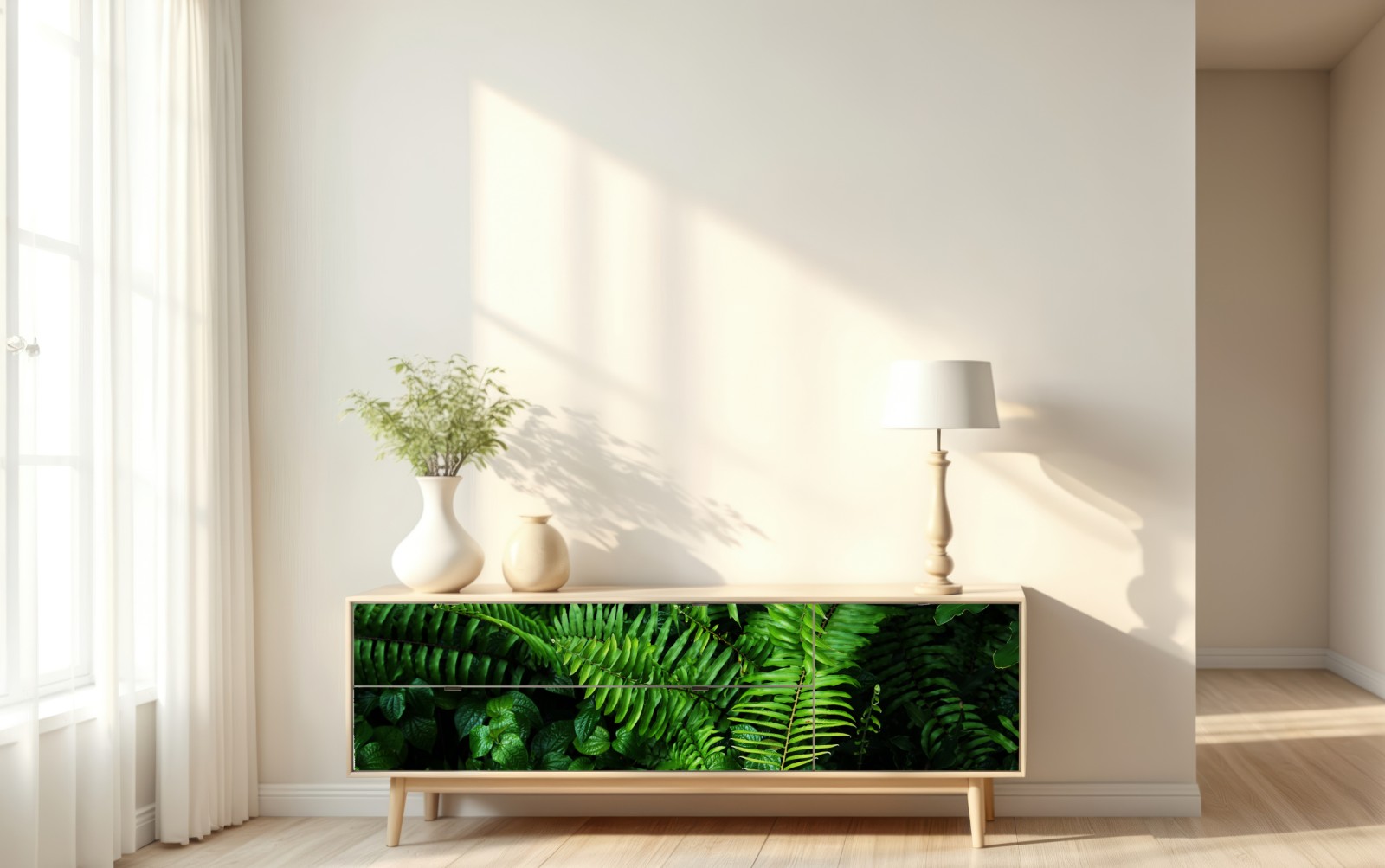 Bringen Sie tropischen Charme ins Zuhause mit satten grünen Farnen und dichter Blattstruktur, die ein beruhigendes, biophiles Ambiente schaffen.