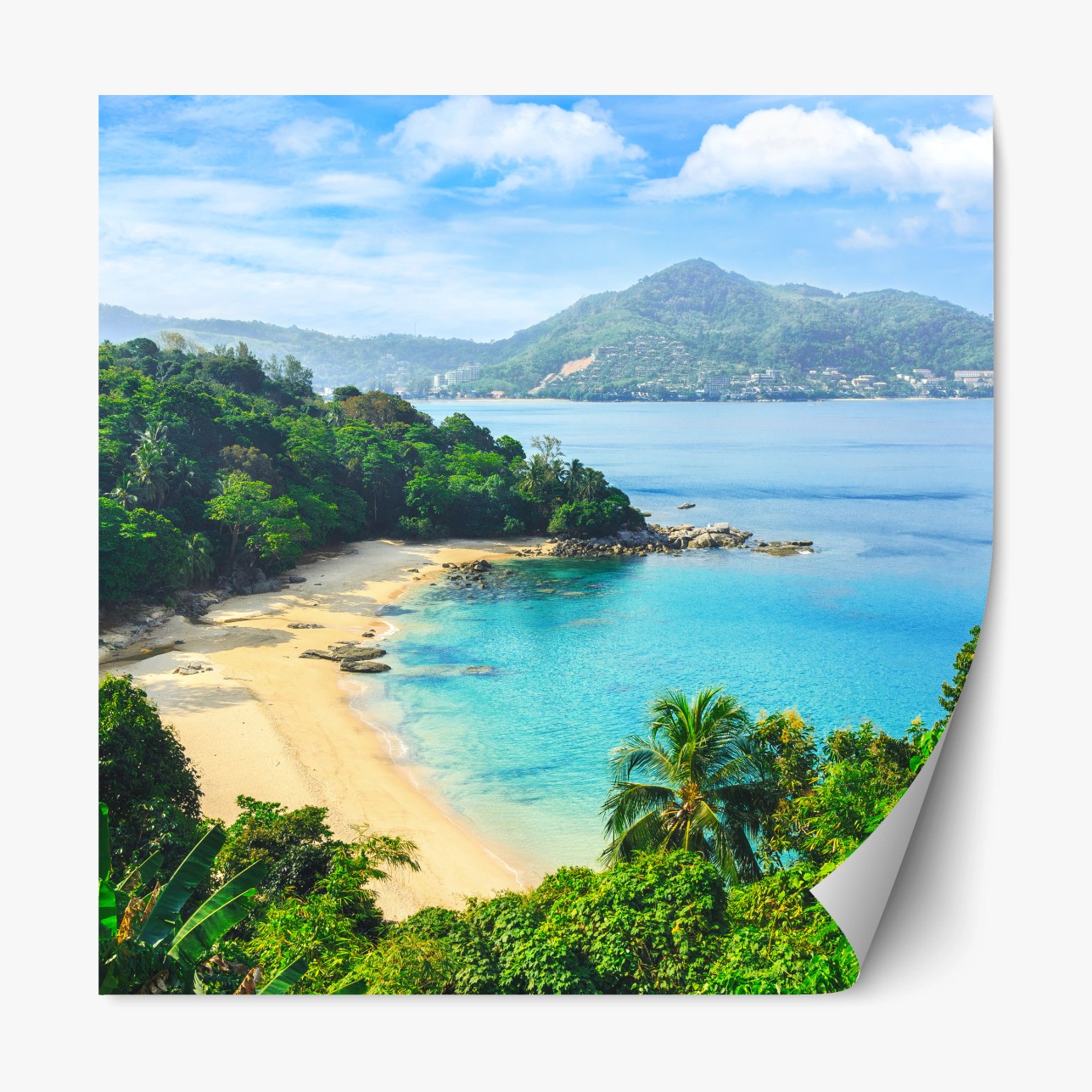 Repositionierbarer Aufkleber Tropische türkisbucht mit palmen