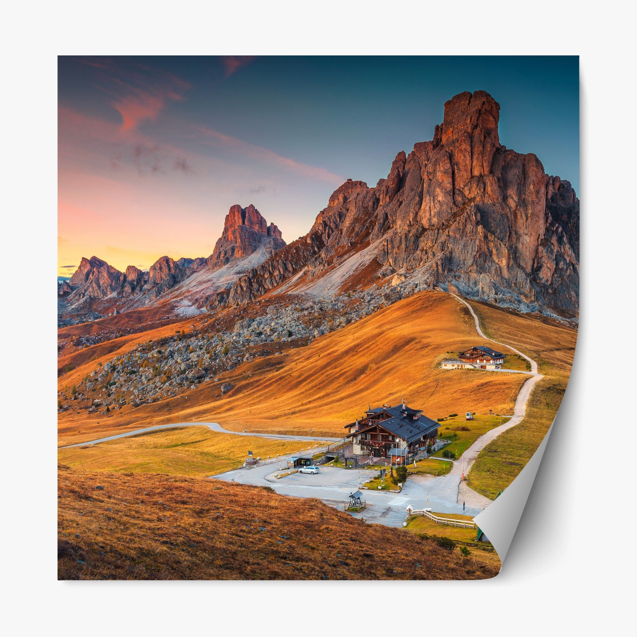 Repositionierbarer Aufkleber Sonnenuntergang über Passo Giau, Dolomiten