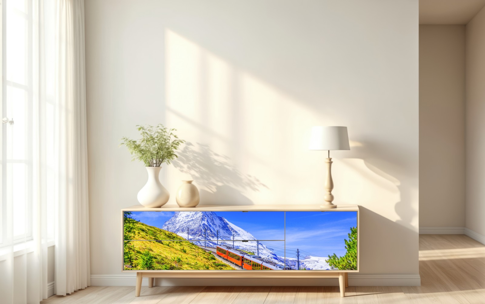 Repositionierbarer Aufkleber Gornergrat zug vor dem Matterhorn