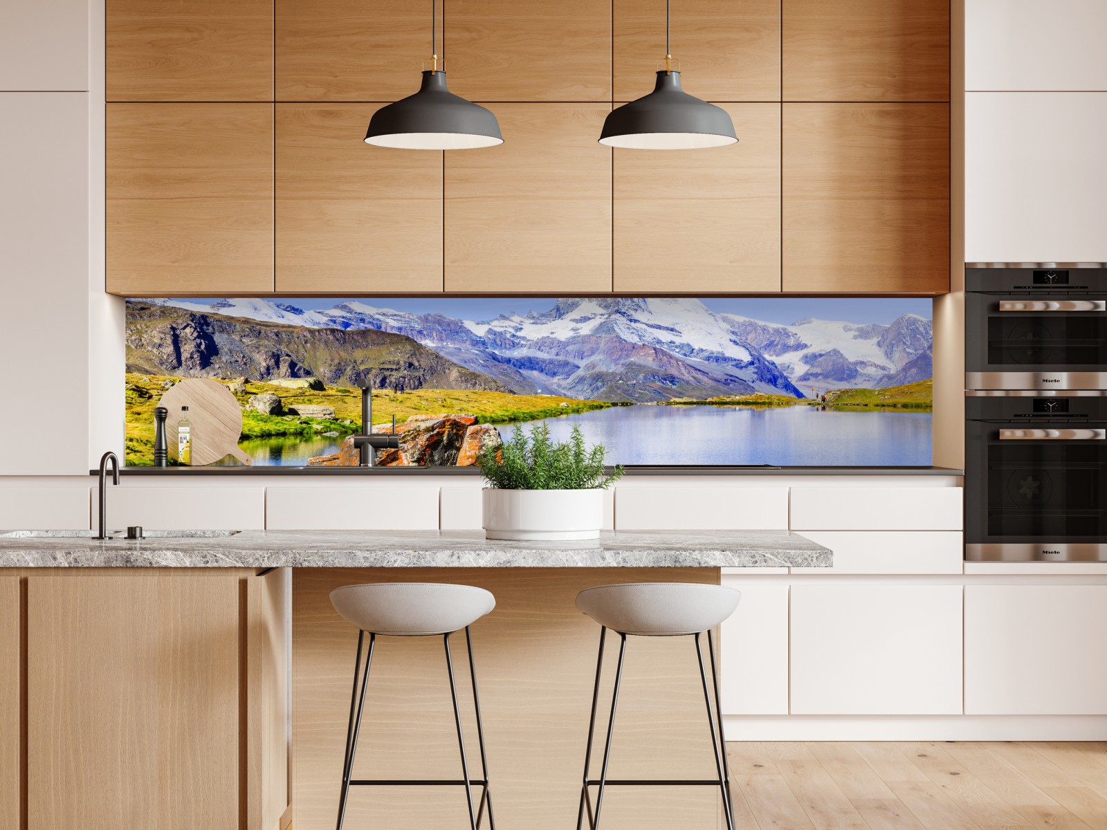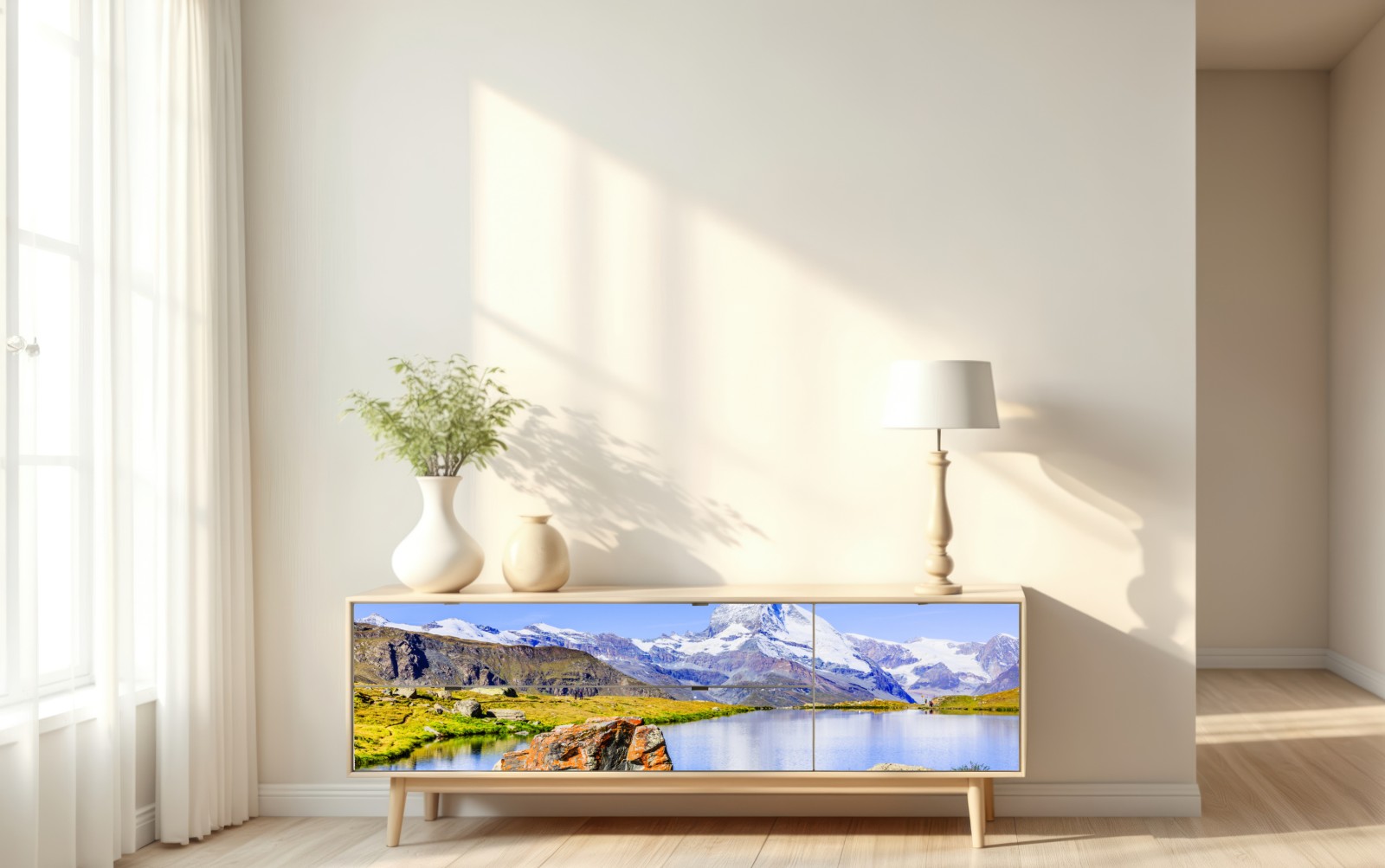 Ruhige alpine Szene mit dem im Stellisee gespiegelten Matterhorn, ideal, um bergige Gelassenheit in Ihr Zuhause zu bringen.