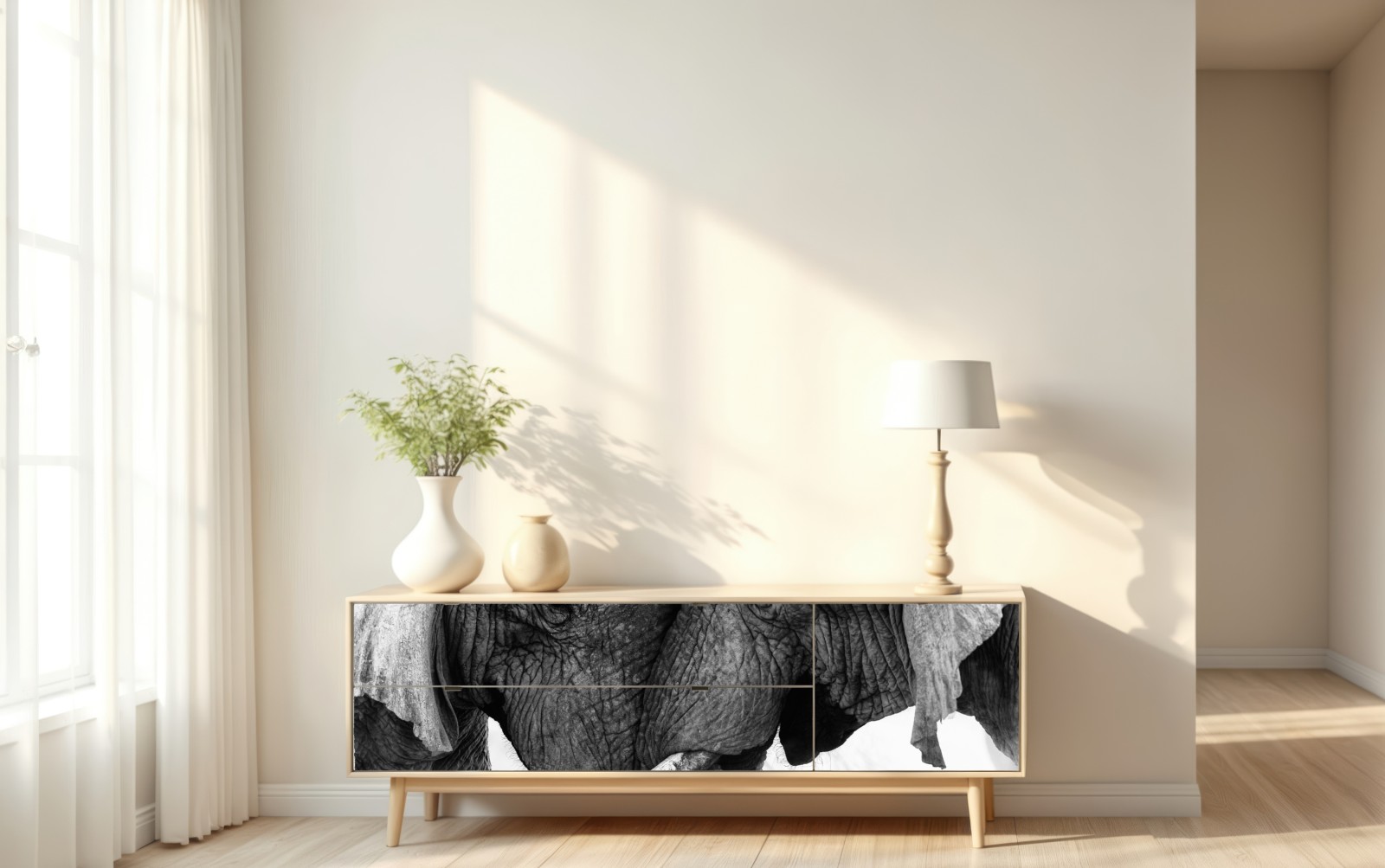 Repositionierbarer Aufkleber elefanten umarmung schwarzweißes porträt