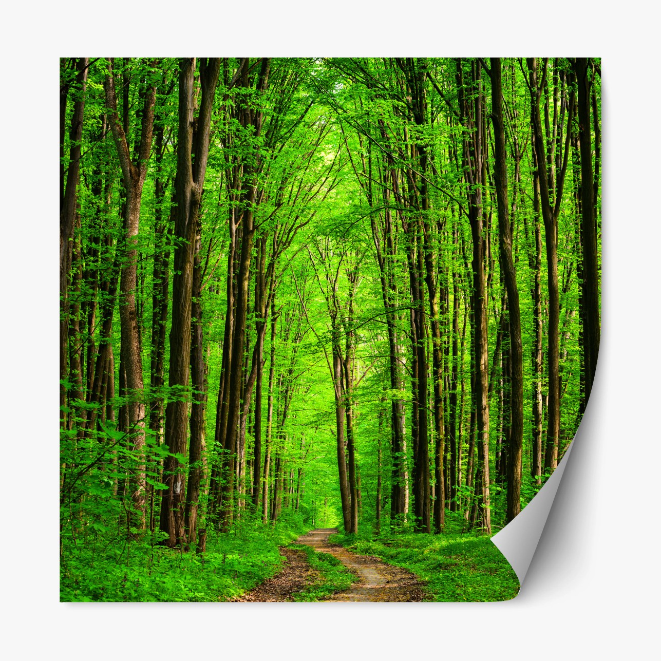 Repositionierbarer Aufkleber Üppiger grüner waldweg