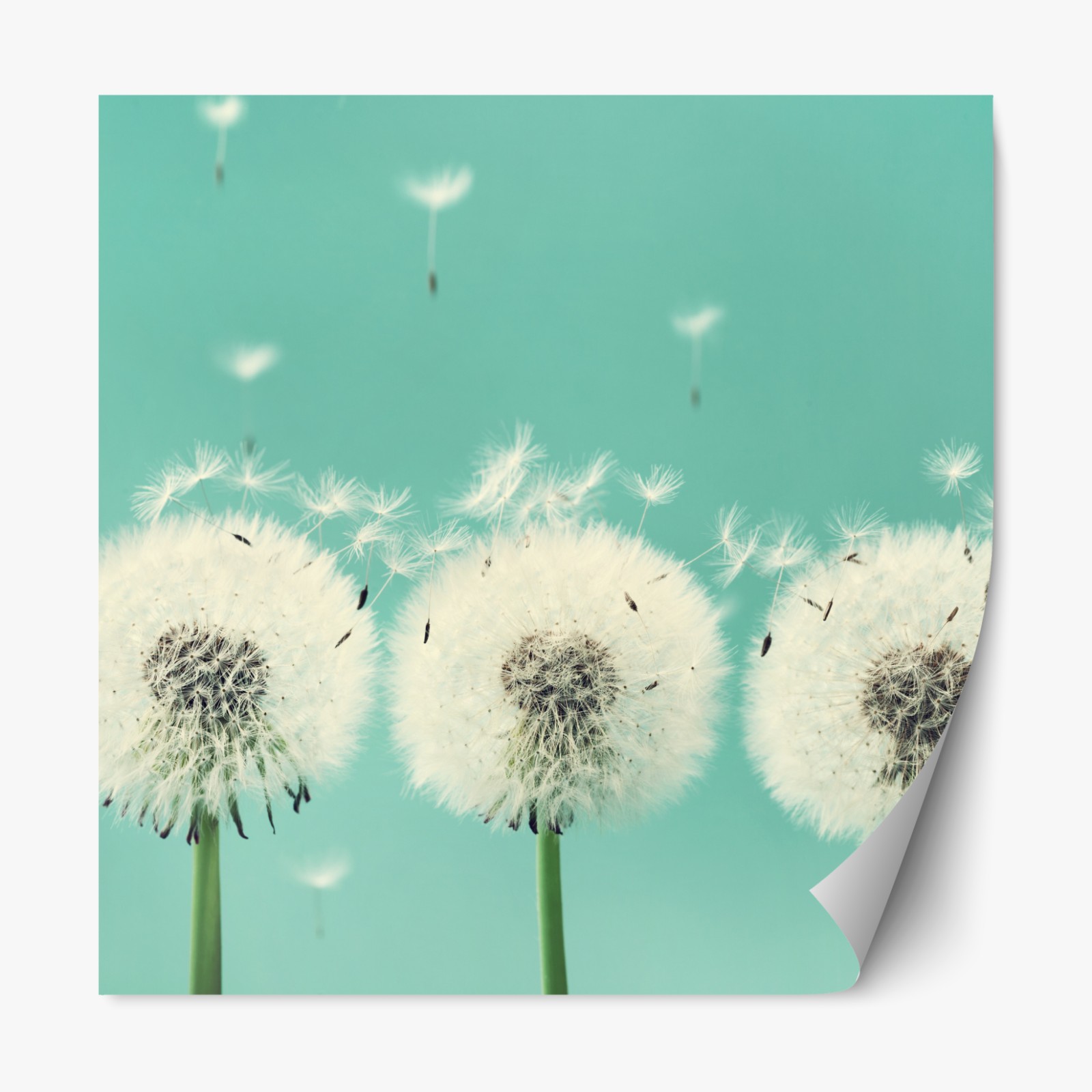 Repositionierbarer Aufkleber drei löwenzahn-pusteblumen auf türkisgrund