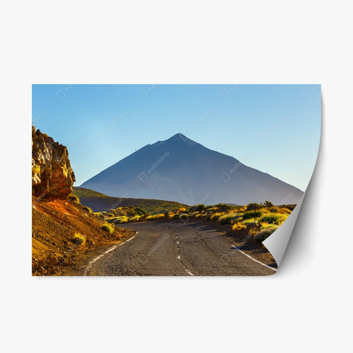Repositionierbarer Aufkleber Sonnenbeschienene bergstraße zum vulkan
