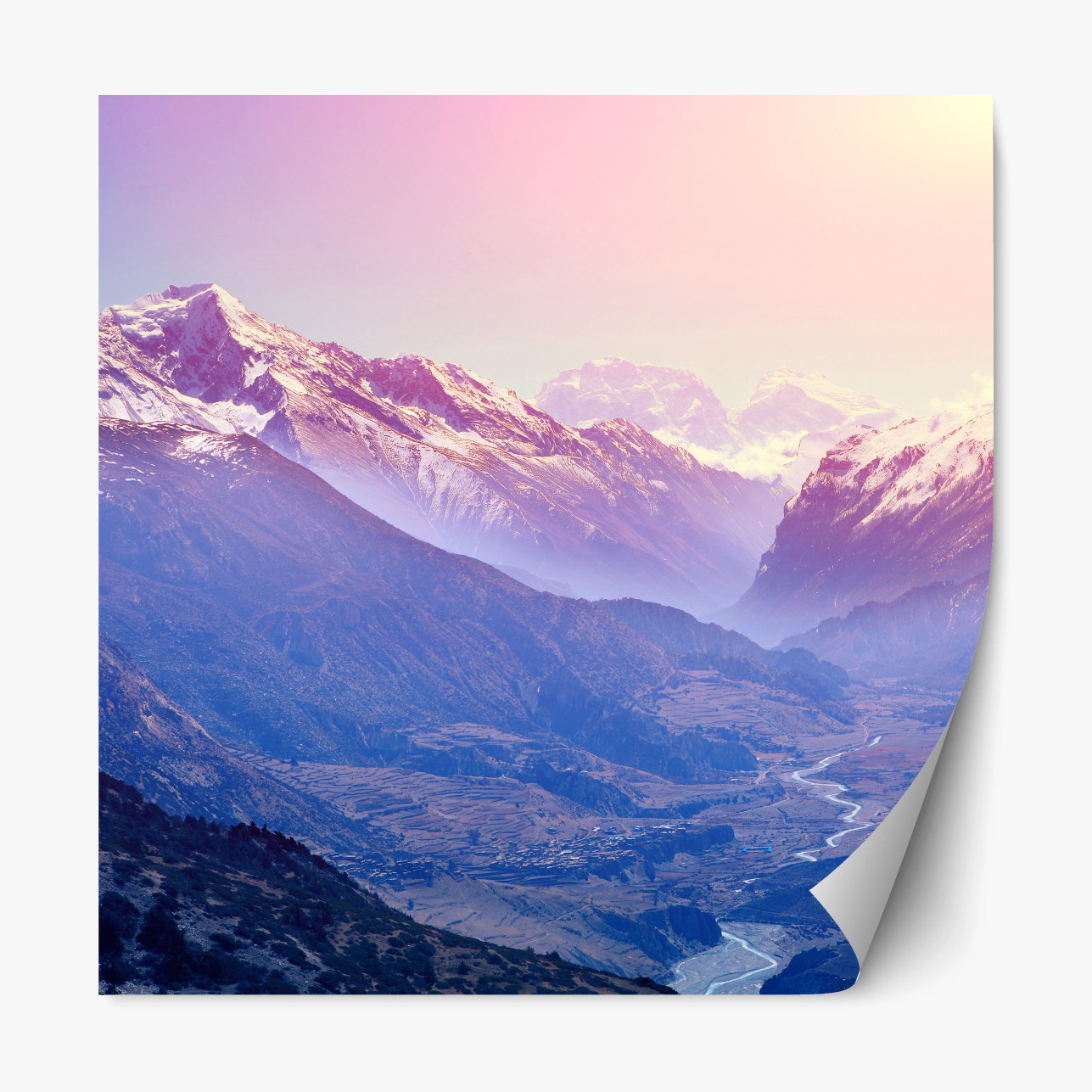 Repositionierbarer Aufkleber Pastelliges bergtal bei sonnenaufgang