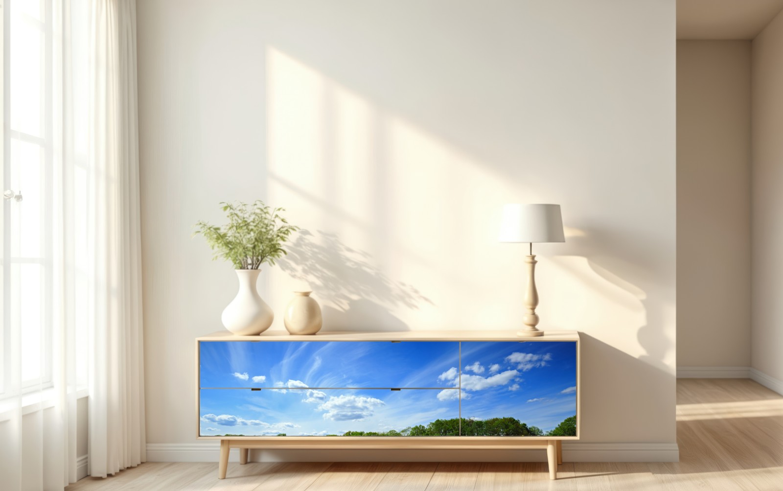 Repositionierbarer Aufkleber polnisches rapsfeld unter blauem himmel