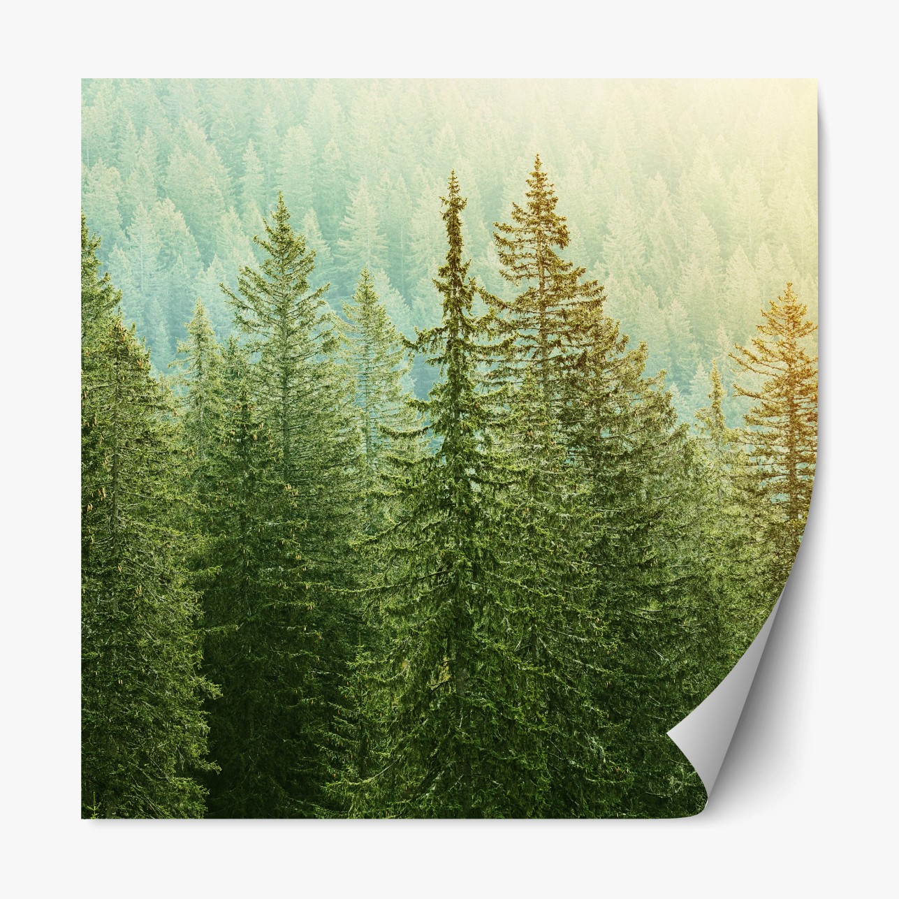 Repositionierbarer Aufkleber Sonnenbeschienener nadelwald