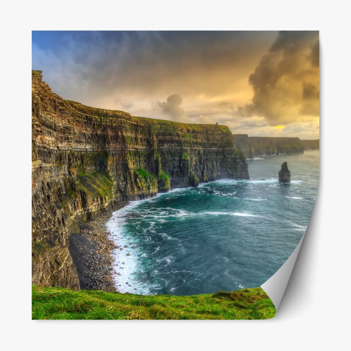 Repositionierbarer Aufkleber dramatische küstenklippen bei sonnenuntergang