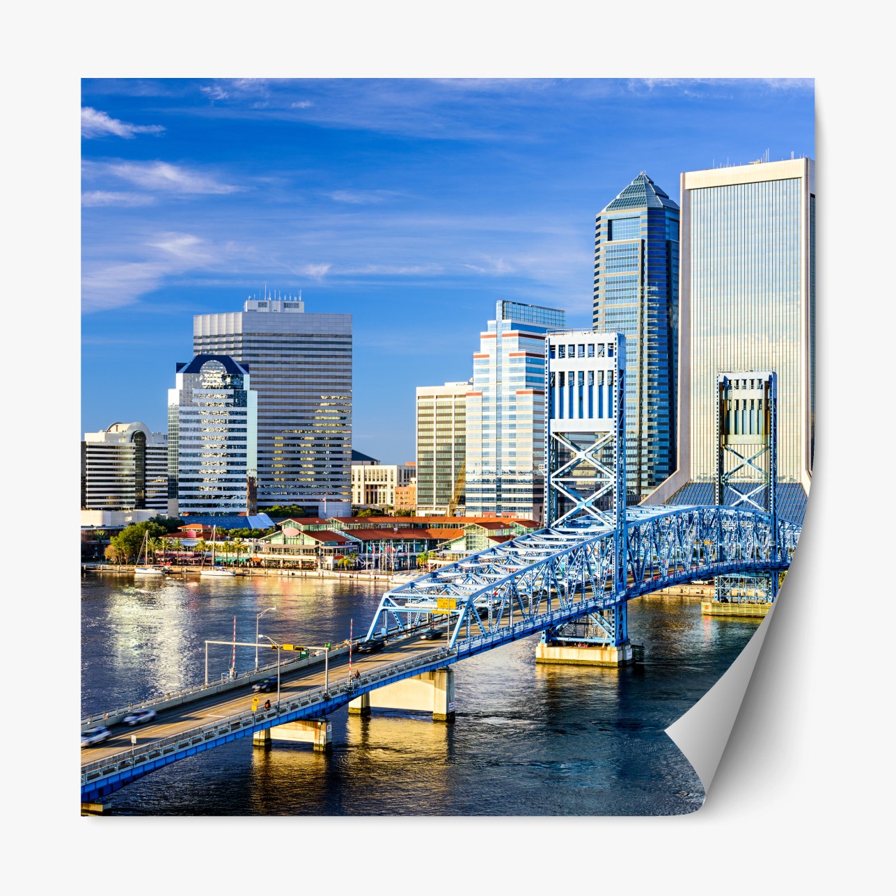 Repositionierbarer Aufkleber Jacksonville skyline mit blauem brücke