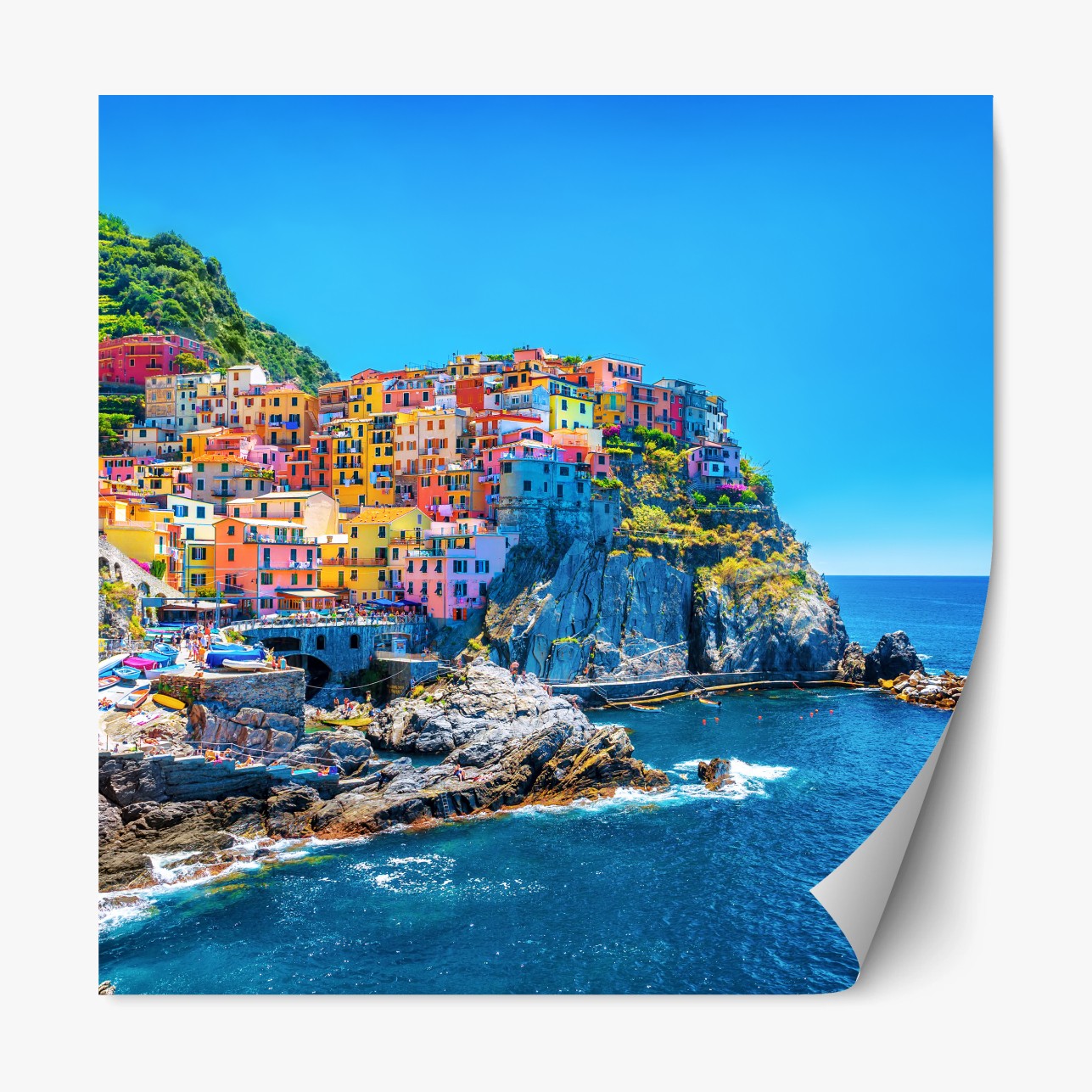 Repositionierbarer Aufkleber Farbenfrohes dorf am klippenmeer