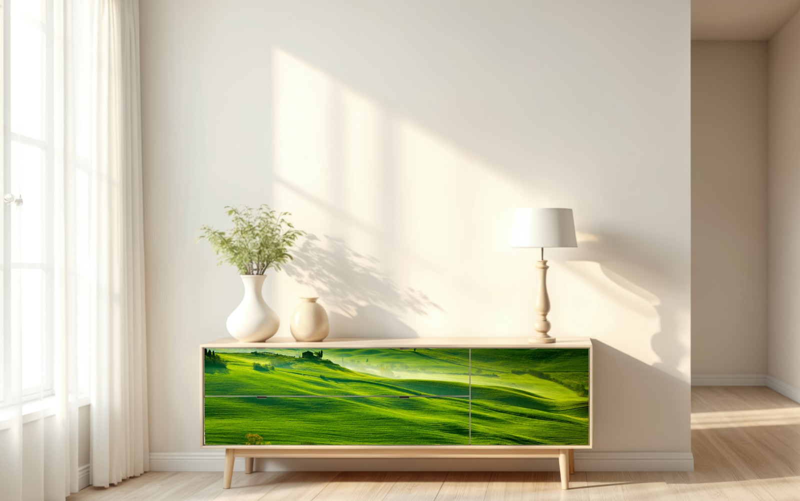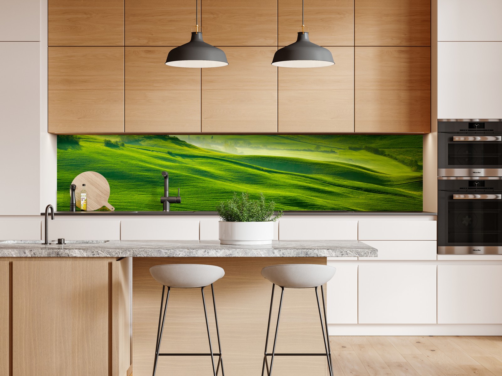 Panoramablick auf sonnige toskanische Hügel, der jedem Raum Wärme und Ruhe verleiht.