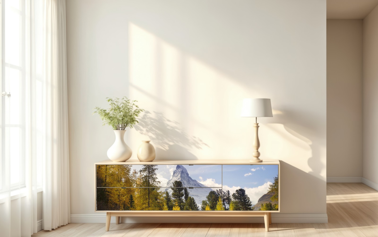 Repositionierbarer Aufkleber goldene lärchen und Matterhorn
