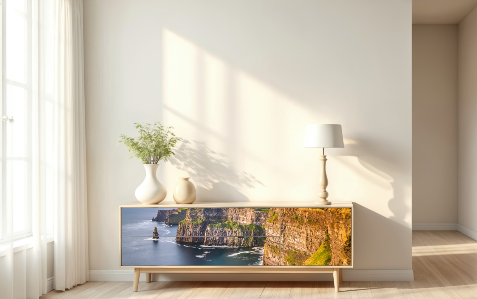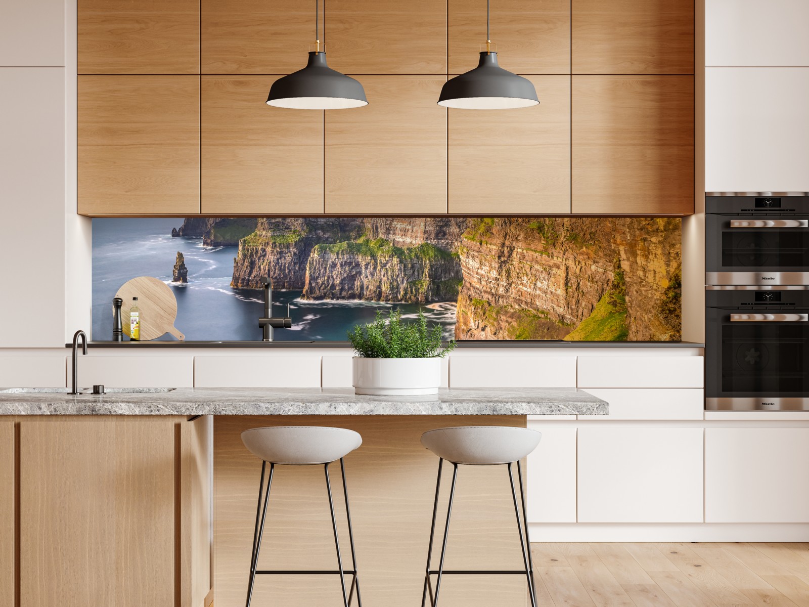 Holen Sie sich die wilde Schönheit der steilen Küstenklippen in Ihr Zuhause mit diesem lebendigen Meereslandschaftsbild, ideal zur Schaffung einer ruhigen, naturverbundenen Atmosphäre.